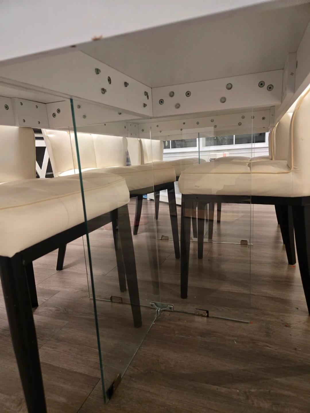 Kamario Glass Dining Table with 6 Faux Leather Chairs