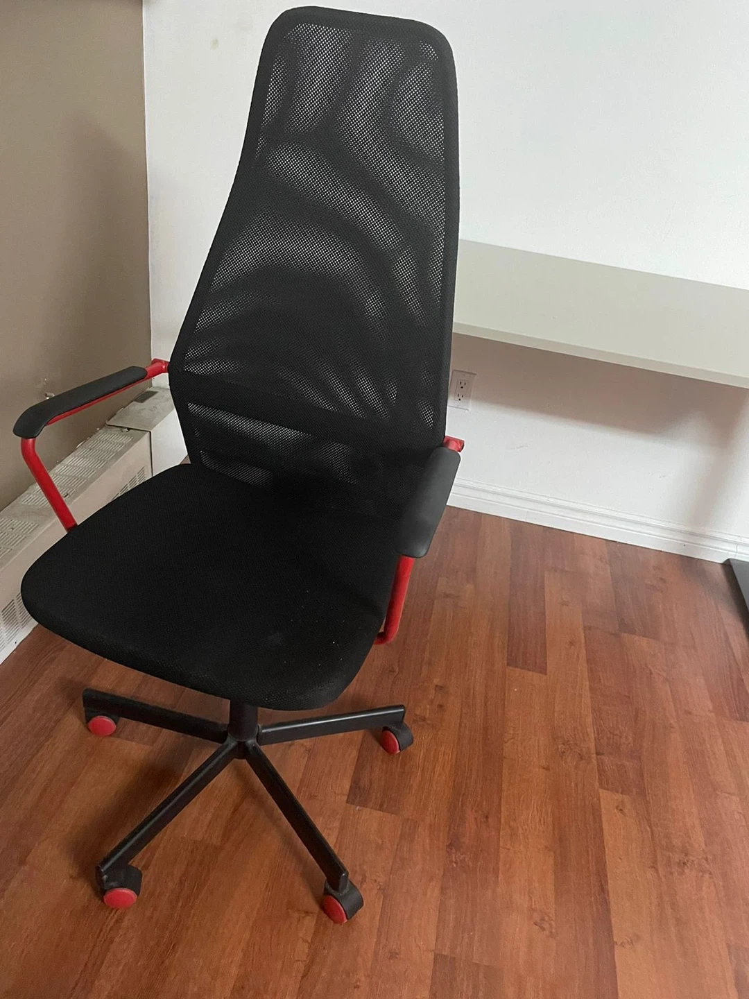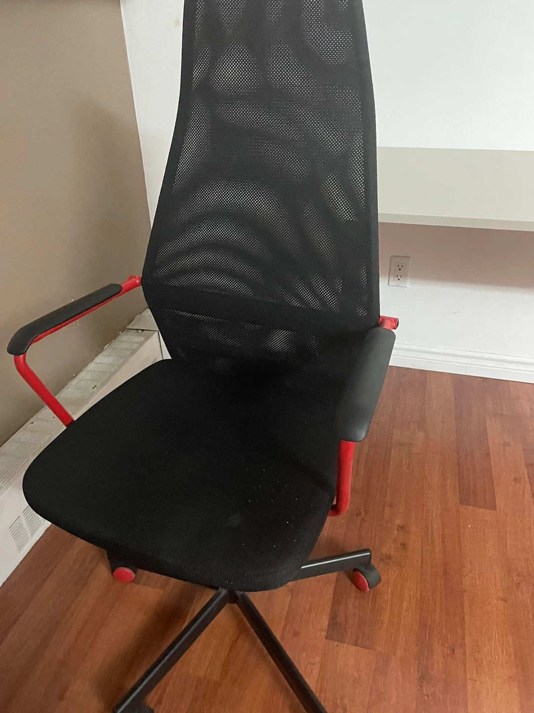 Black office chair with red accents