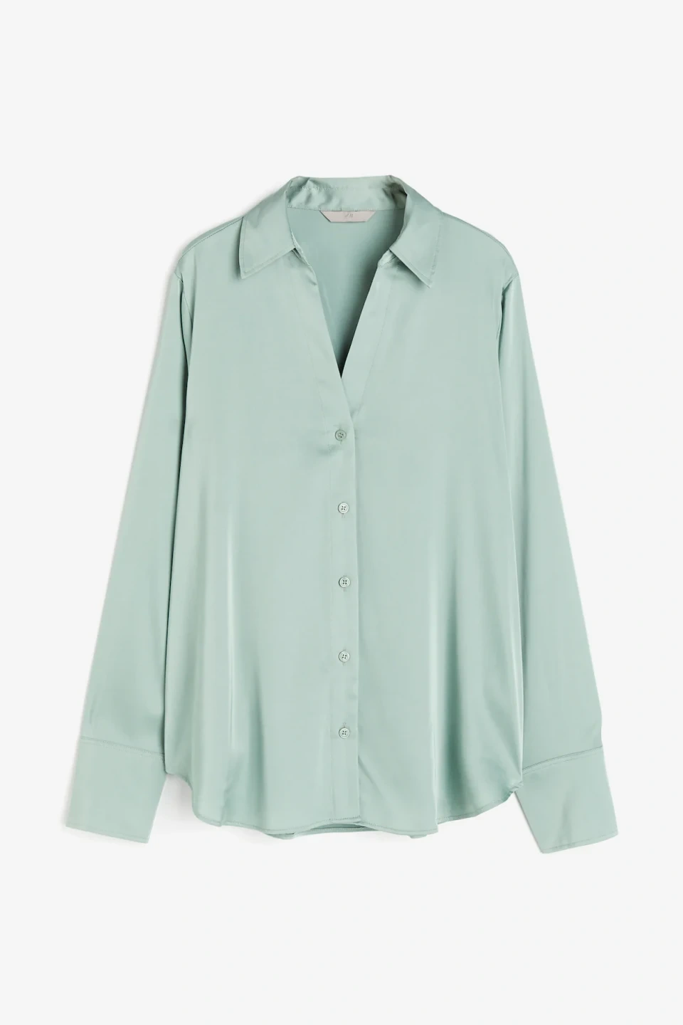 This H&M satin blouse comes in a lovely light green colour. It's a size XXL with long sleeves. It's a versatile piece that can be dressed up or down! Never worn.