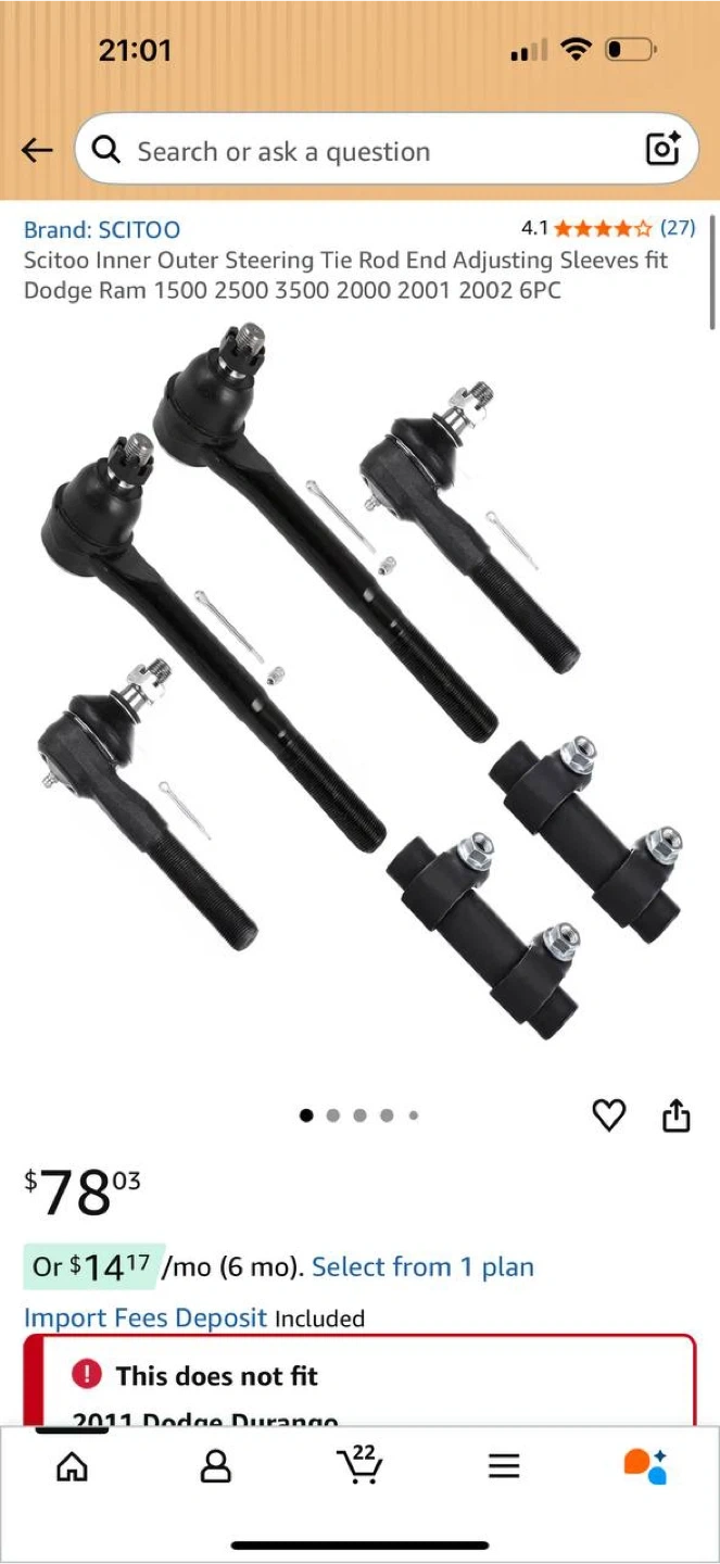 ✅ SCITOO Inner & Outer Tie Rod Ends + Adjusting Sleeves — Open Box — $60