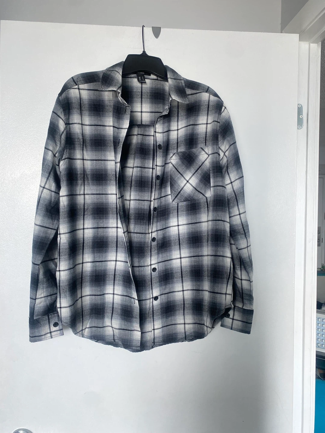 Never worn classic black, white, and grey plaid long-sleeve button-up shirt from Forever 21. It's a size small. This shirt is great for layering or wearing on its own! Soft flannel, very comfy