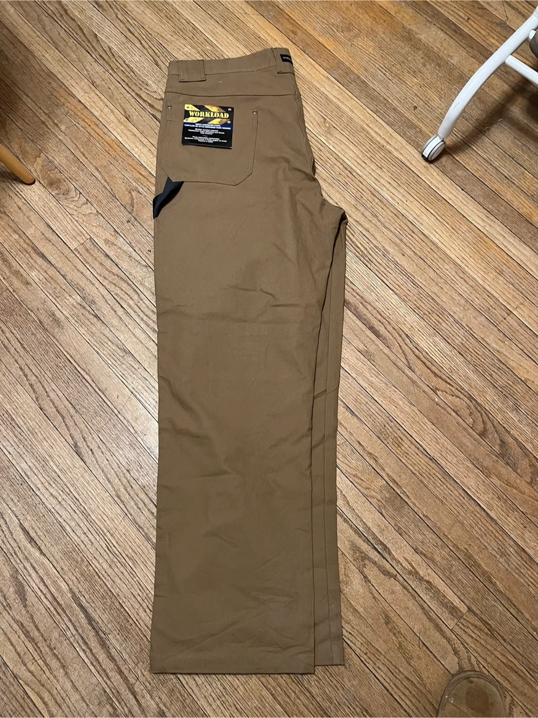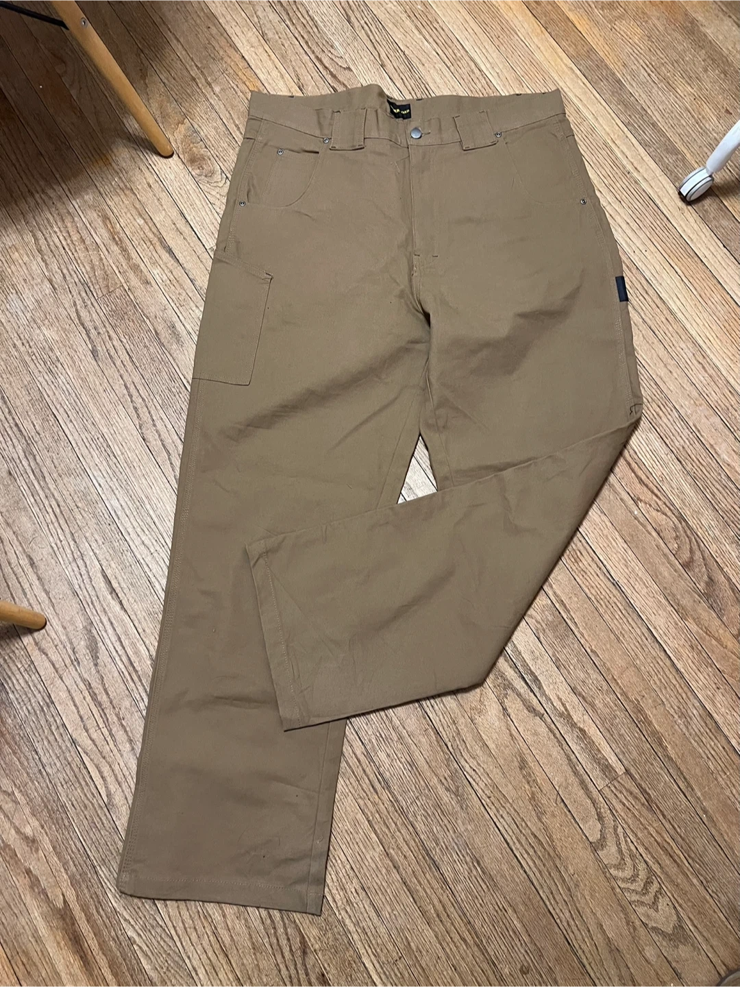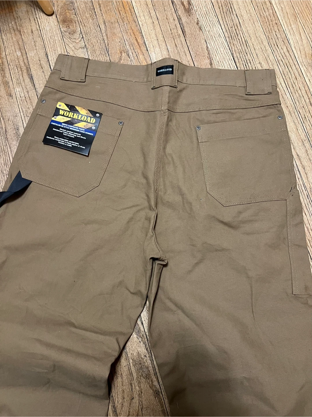 These khaki utility pants from Workload are built tough. They feature a durable canvas material and multiple pockets for convenience. Perfect for work or everyday wear! Size 38