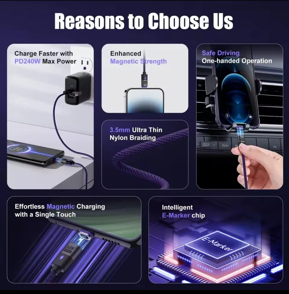 Energy Fort Magnetic USB-C Cable 240W PD3.1