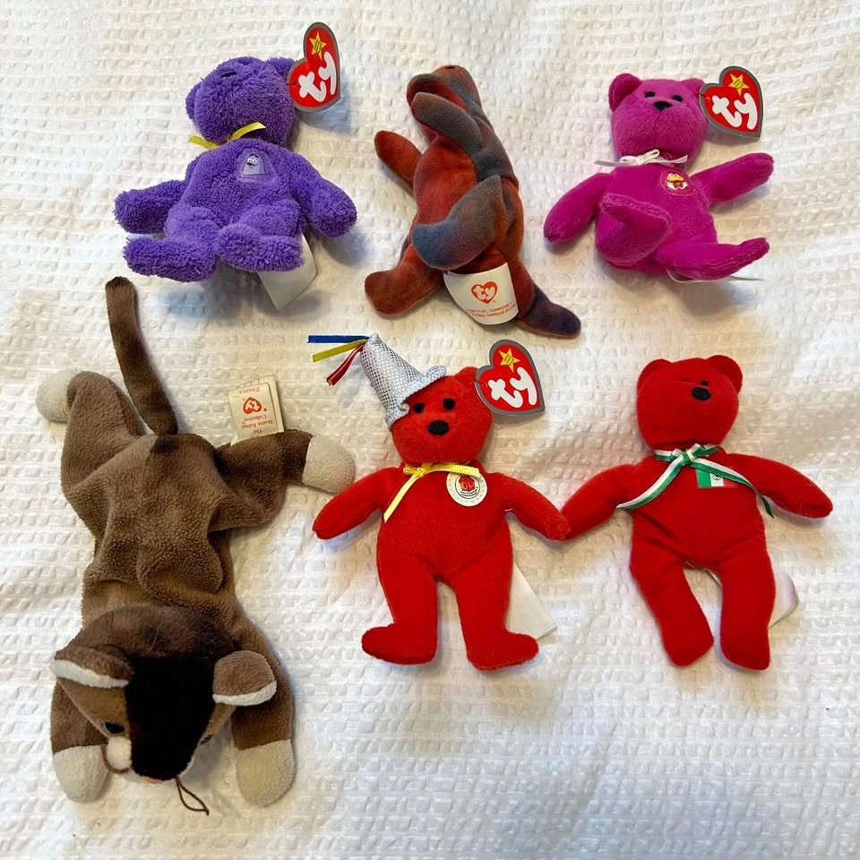 Assorted Beanie Babies from 1997-2004, including McDonald's Happy Meal toys.