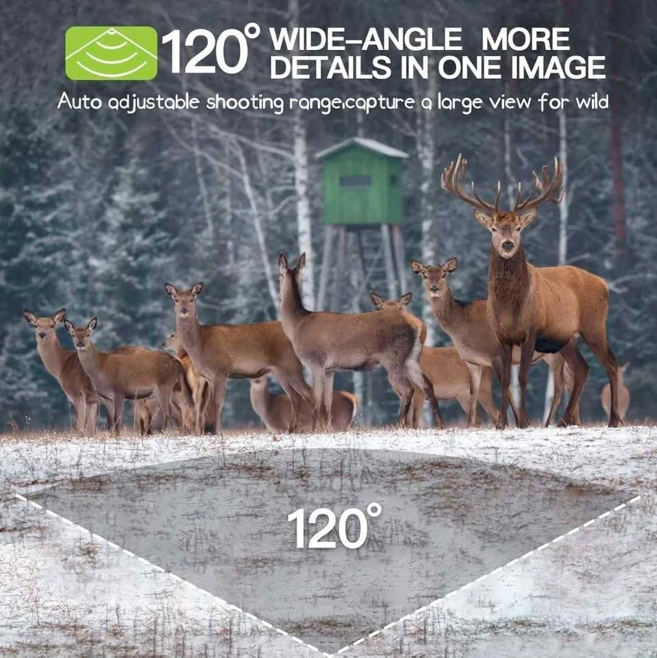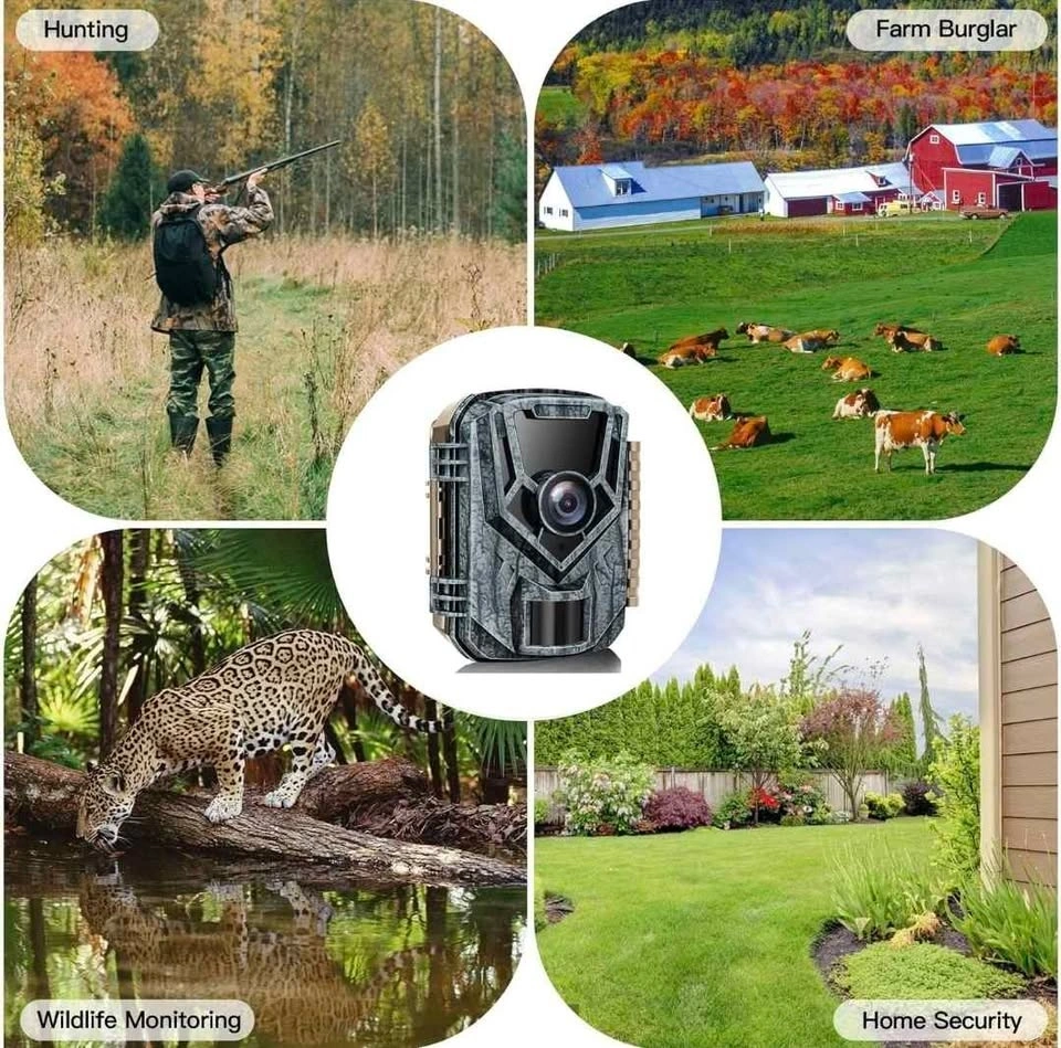 The wildlife camera can be easily installed at any desired angle using the provided mounting straps and stand. The mounting tool included in the package ensures a secure and firm attachment of the trail camera. This versatile hunting camera can be applied to wildlife observation, hunting, home/property security, farm area surveillance, and even remote crop monitoring. Includes 8 batteries with 0.2s trigger time.