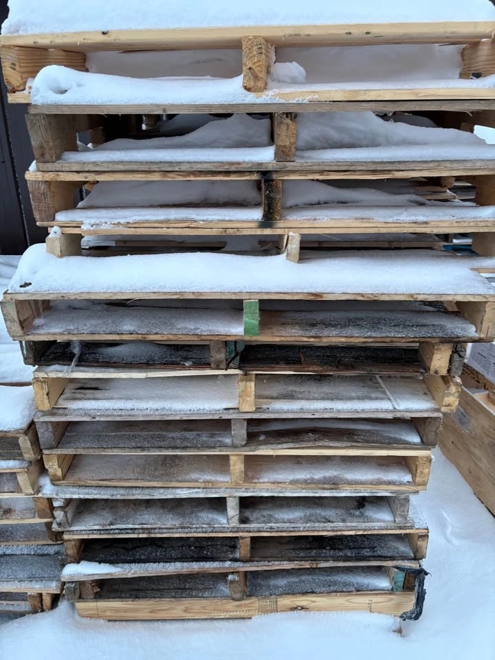 22 standard 48x40 wood pallets / skids available. All stringer style, solid and stackable. Mixed used condition but overall good — no major rot, still fully usable for shipping, storage, or projects. Pick up only.