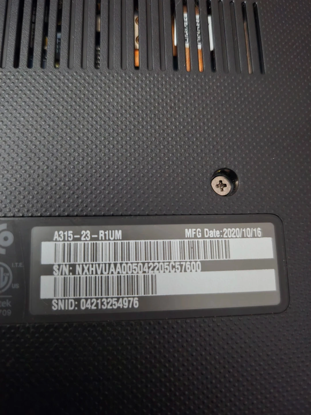 Acer Aspire 3 laptop with a narrow bezel and precision touchpad. It's powered by an AMD Ryzen 3 processor and AMD Radeon graphics. The memory is SO-DIMM and upgradable. Manufactured on October 16, 2020.