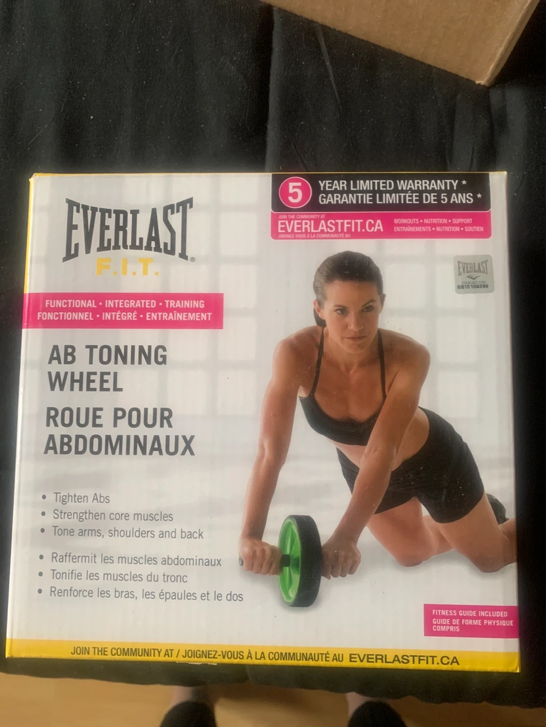 This Everlast F.I.T. ab toning wheel helps tighten abs and strengthen core muscles. It's designed to tone arms, shoulders, and back. A fitness guide is included with the wheel.