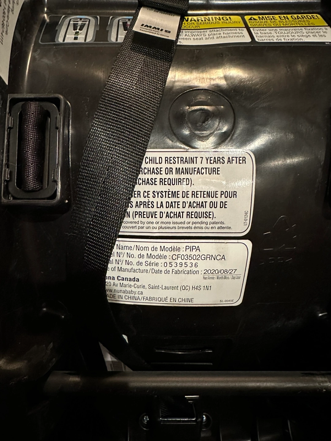 Nuna Pipa Car seat with Base and Stroller Adaptor. Includes all original pieces - padding, baby insert.