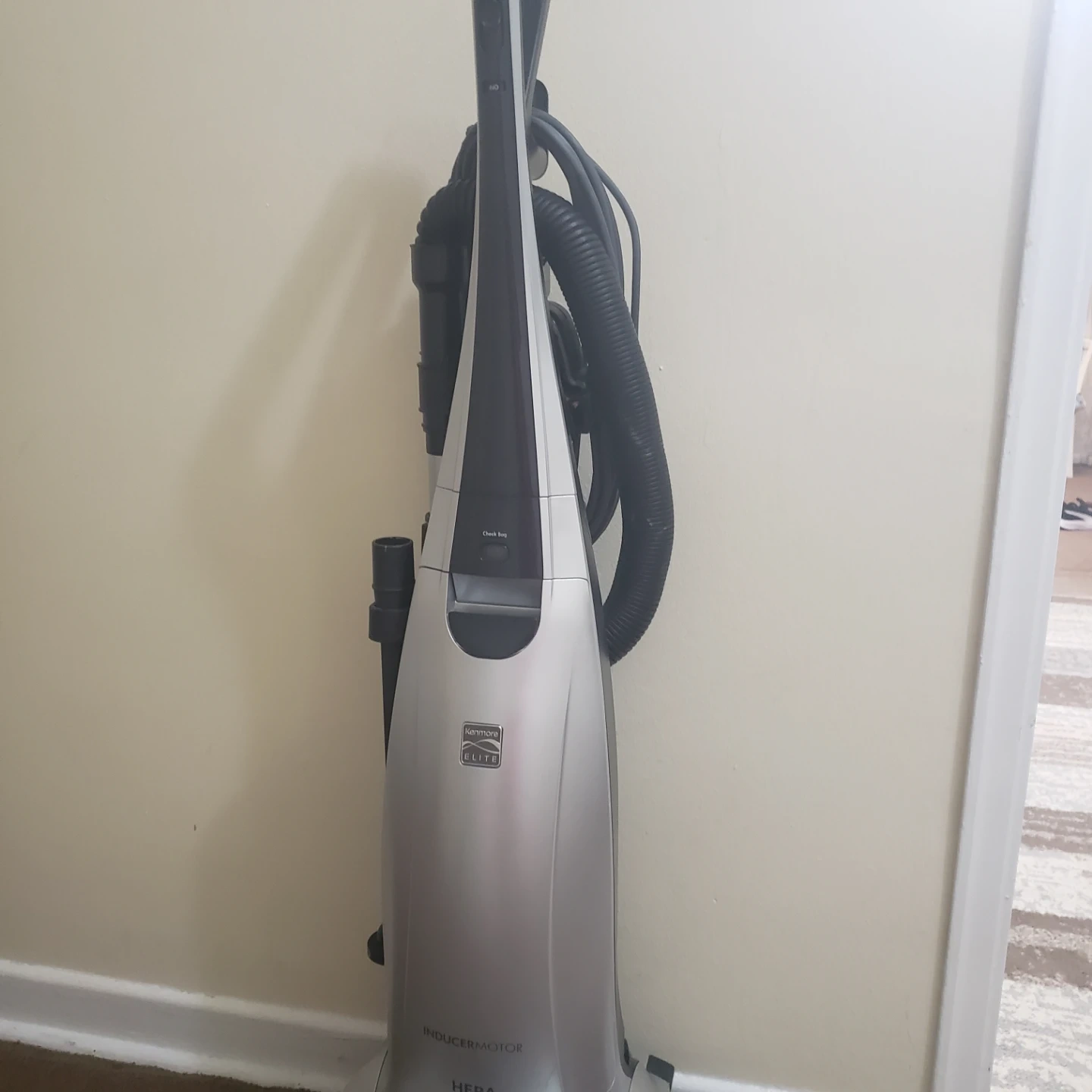 Kenmore Elite bagged upright vacuum cleaner. It features HEPA filtration for cleaner air. This vacuum is designed for all floors. Power cord and hose are included.