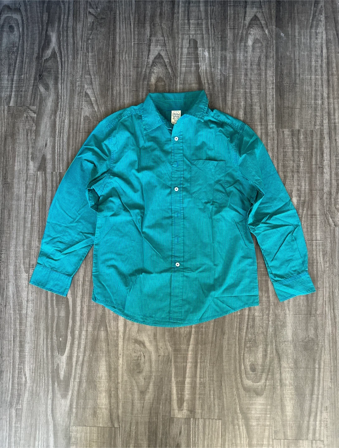 Folded Glory Teal Plaid Long Sleeve Button-Up Shirt