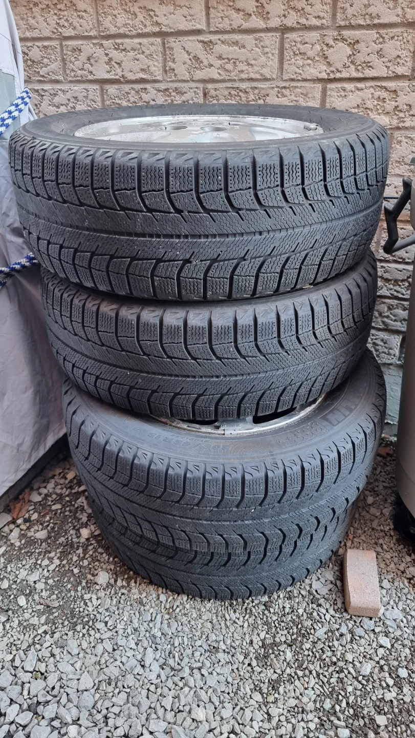 Four Michelin X-ice winter tires with wheels fit on Toyota Camry. Bolt pattern is 5x114.3mm. The tire size is 205/55 R15. Selling the wheels which comes with tires.