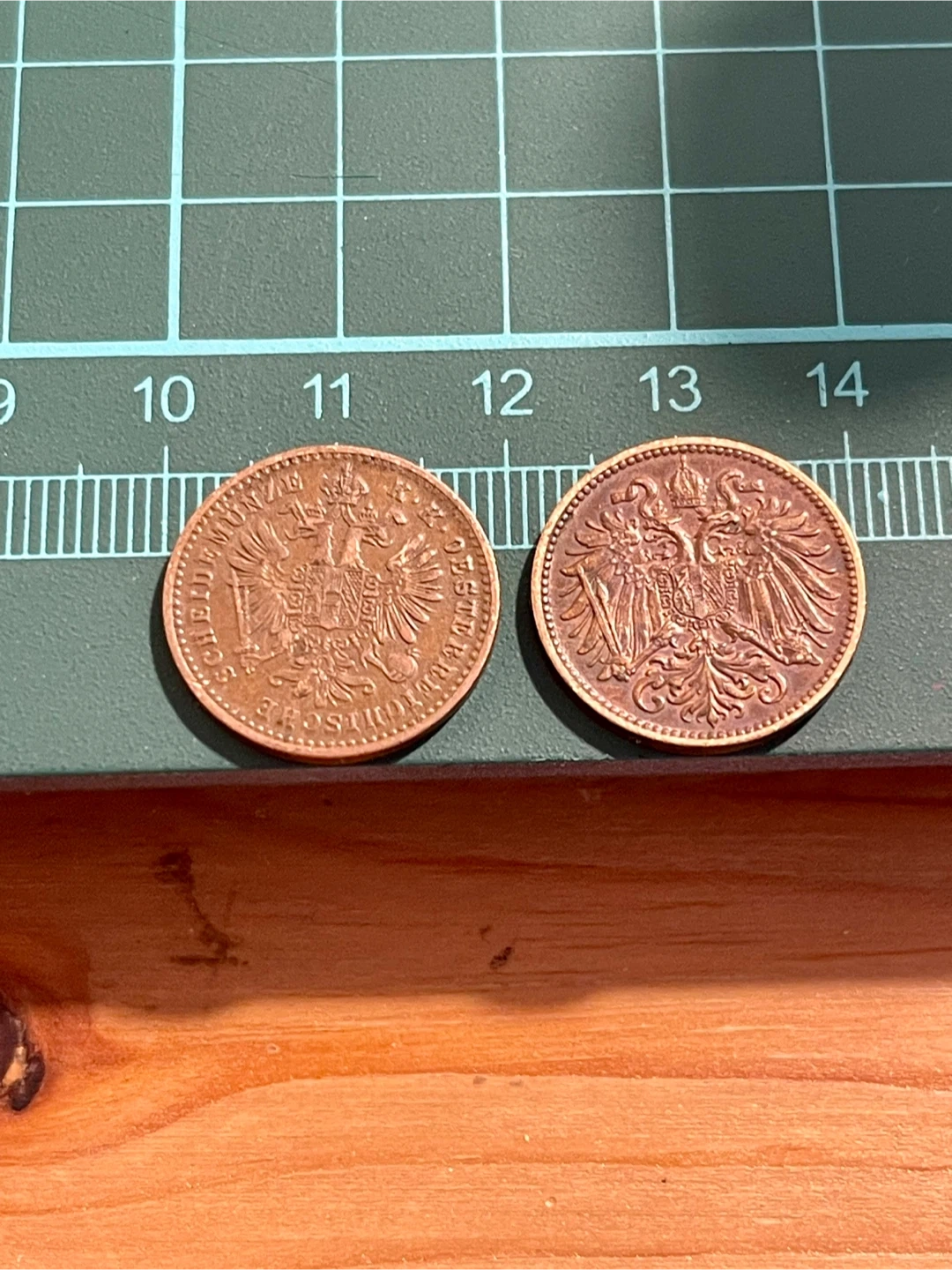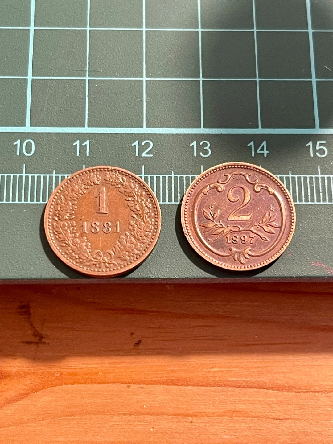 Two Vintage Austrian Coins - 1 Heller 1881 & 2 Heller 1897