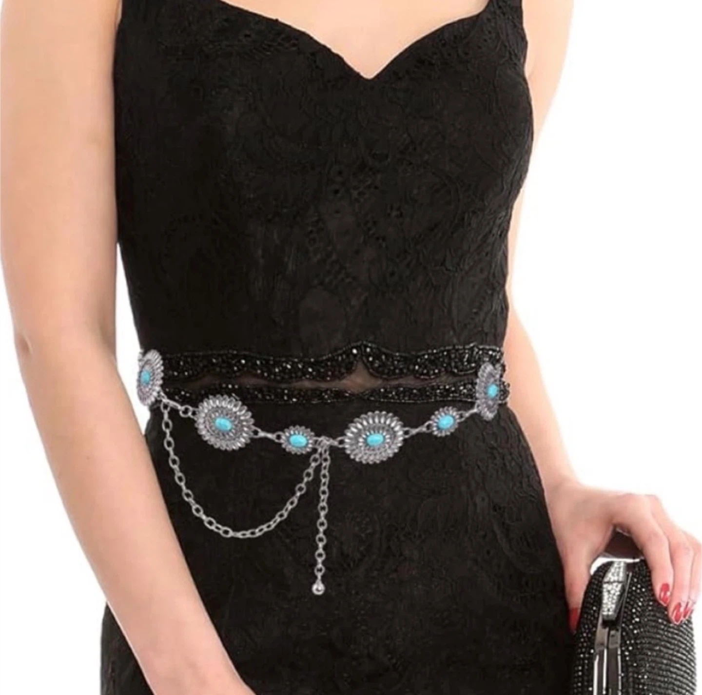 BNWT! Western Oval Concho Metal Waist Chain Belt
