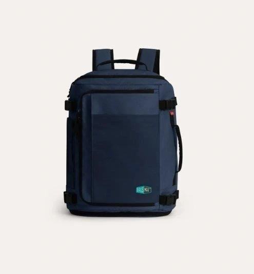 This Bags Mart backpack is navy blue and offers 28L of space. It expands to 38L and fits up to a 15.6" laptop. It's overhead and underseat approved for trips up to 3-5 days.