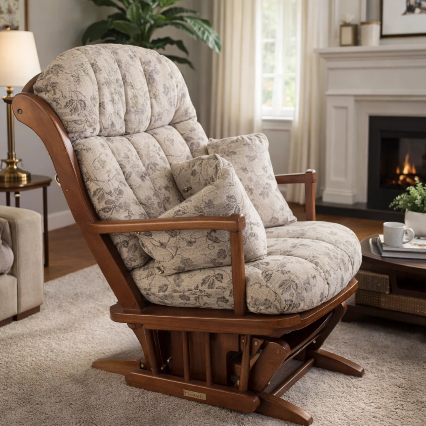 Glider Rocking Chair with Floral Print Cushions