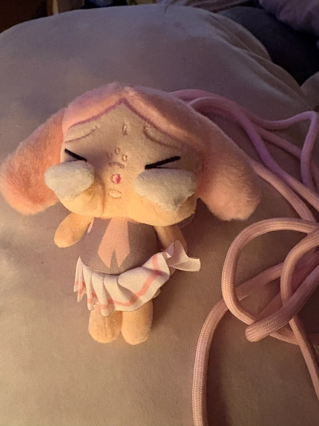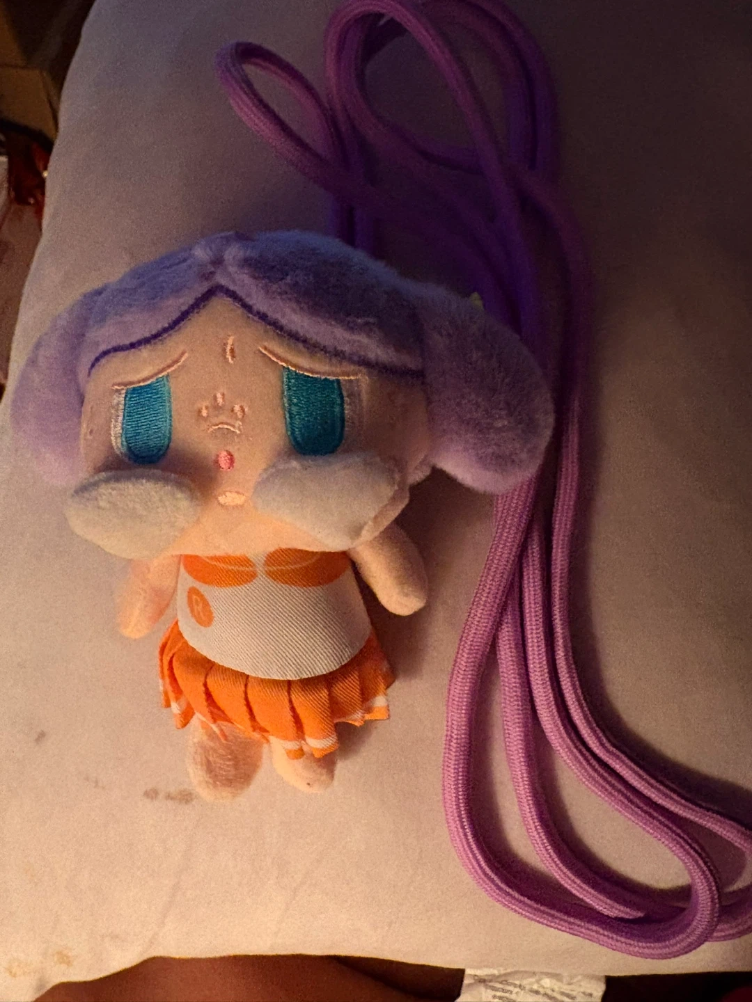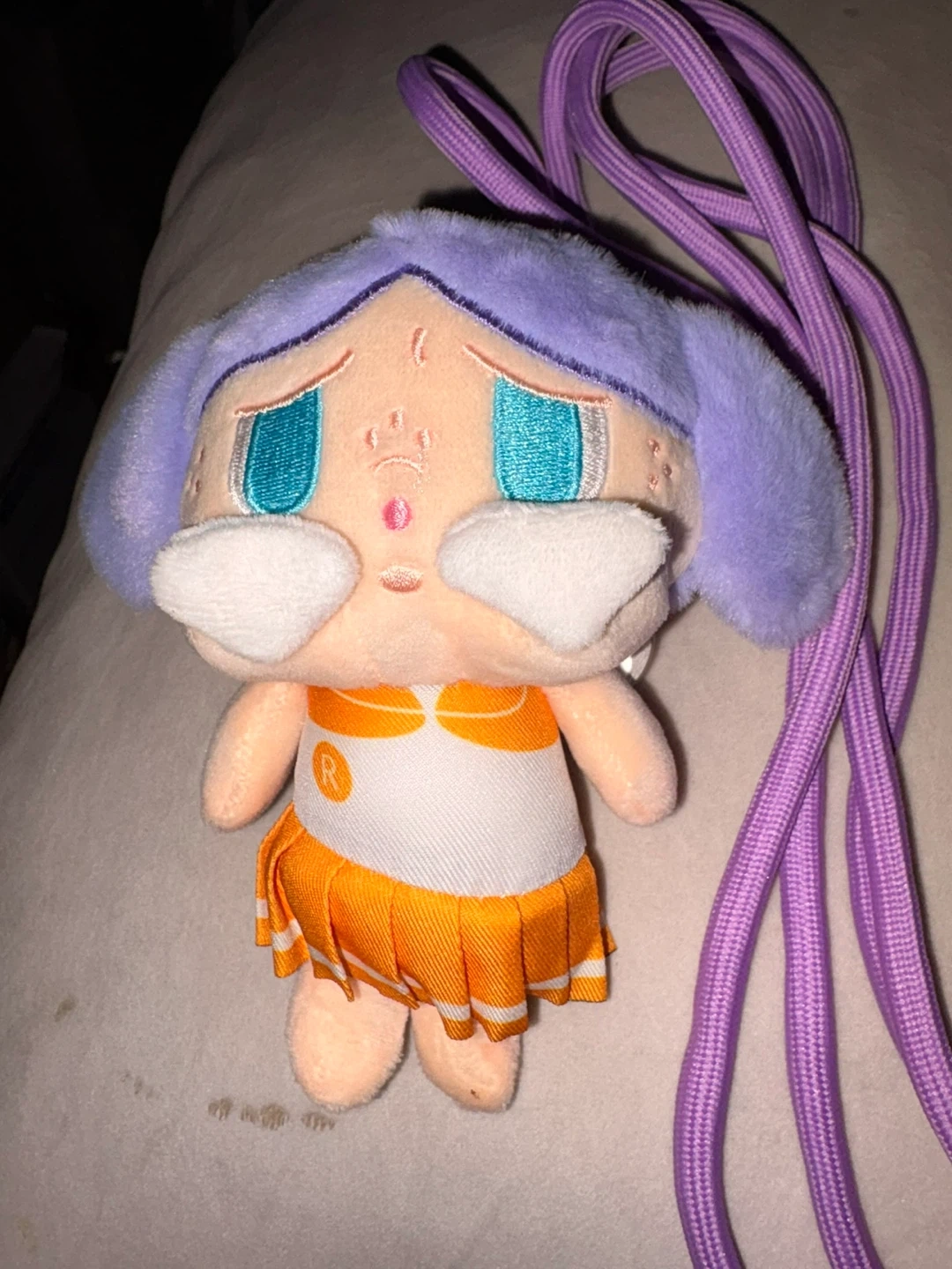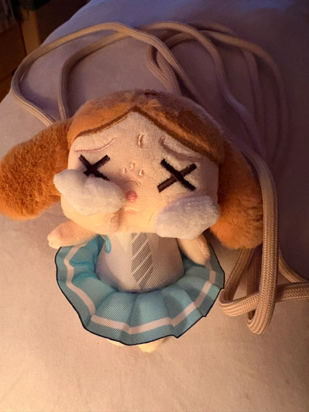 This is a cute plush doll accessory with a lanyard. It's soft and features a unique character design. The lanyard is adjustable for comfortable wear , and phone holder . Zelle or cash here. Wellington and Halsted.