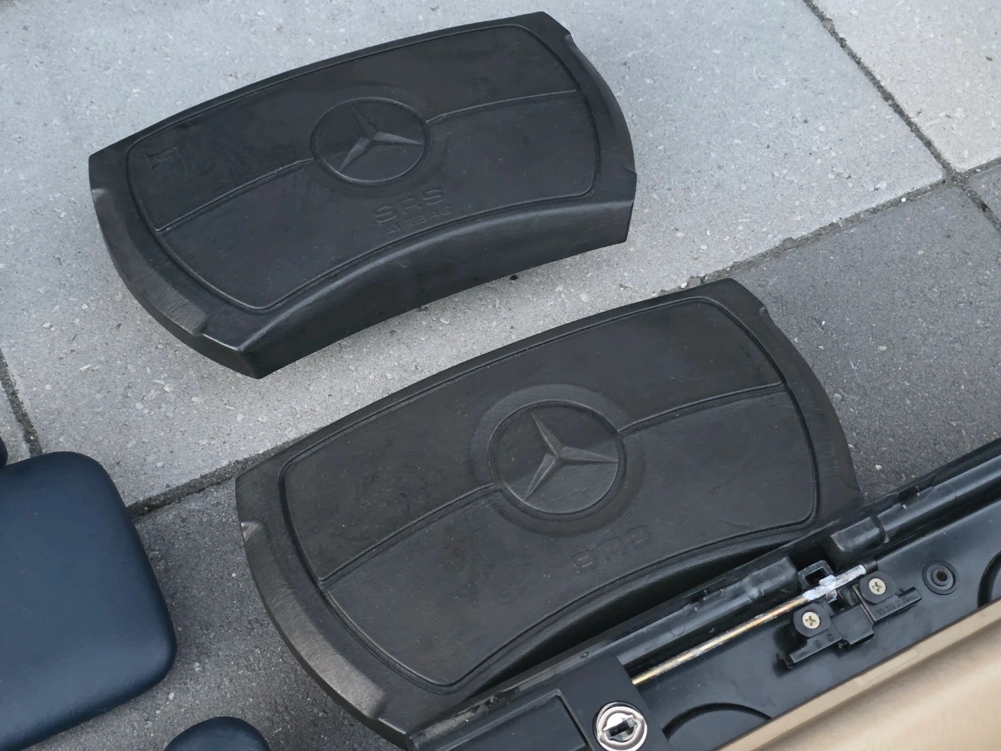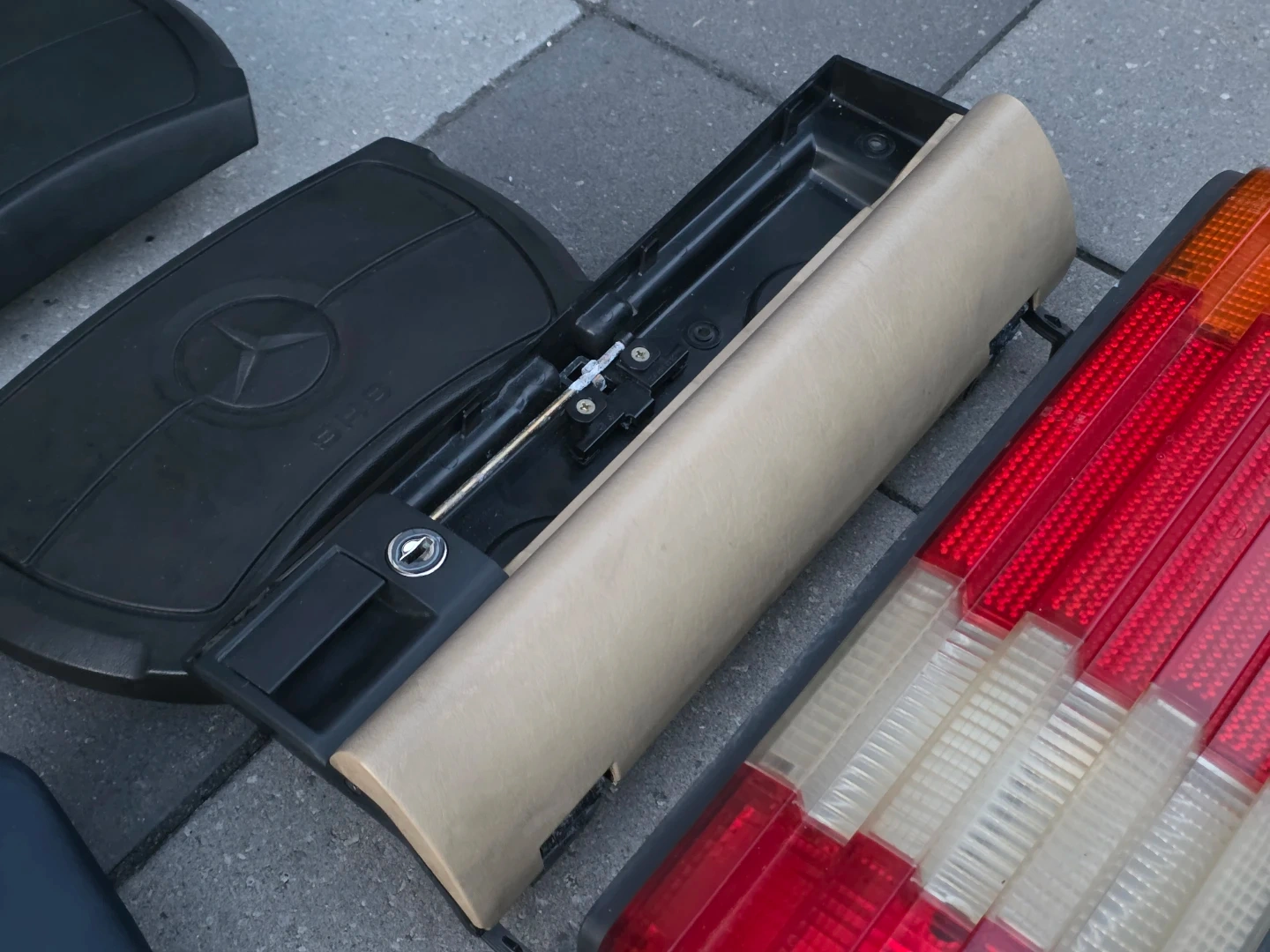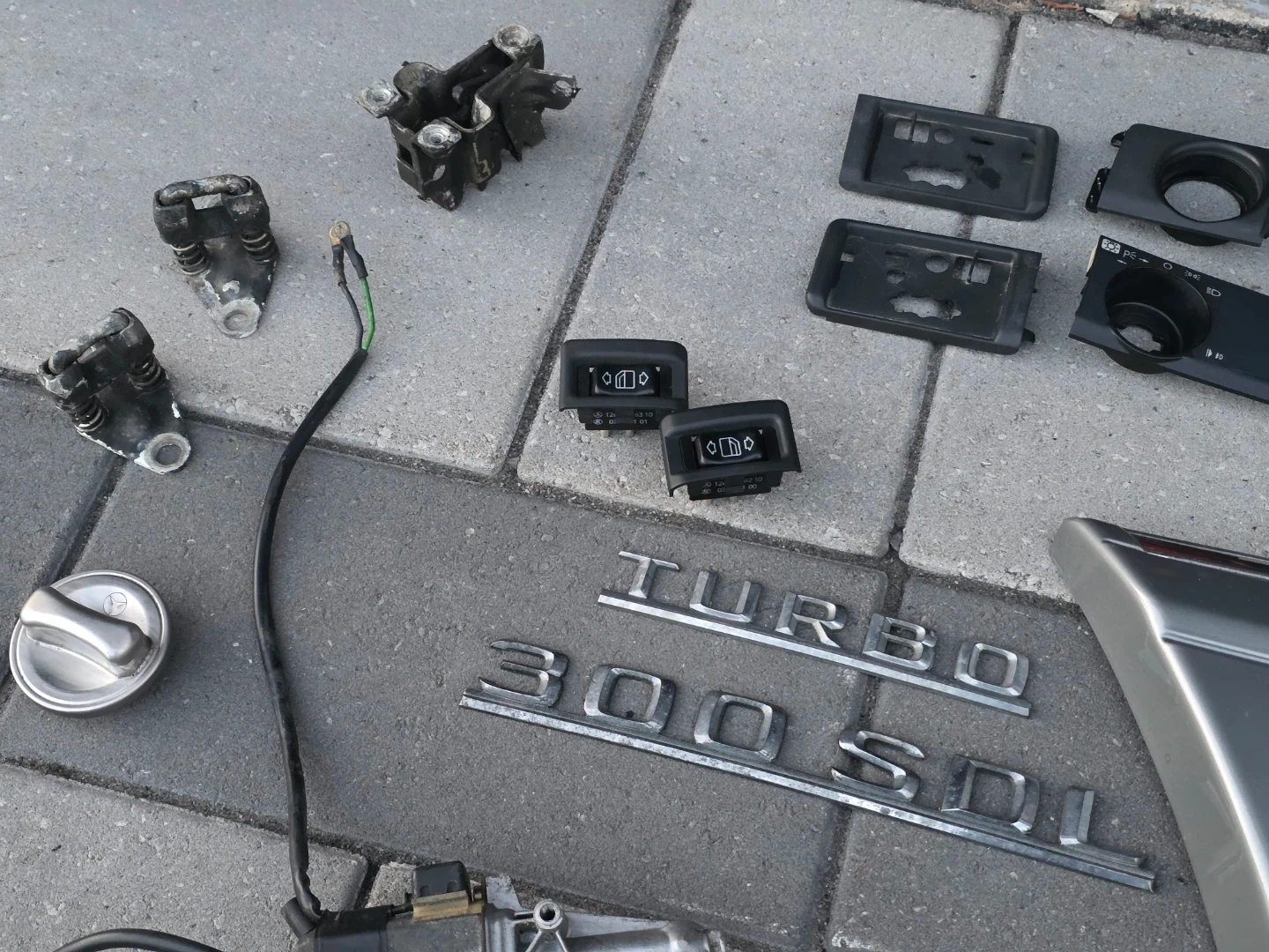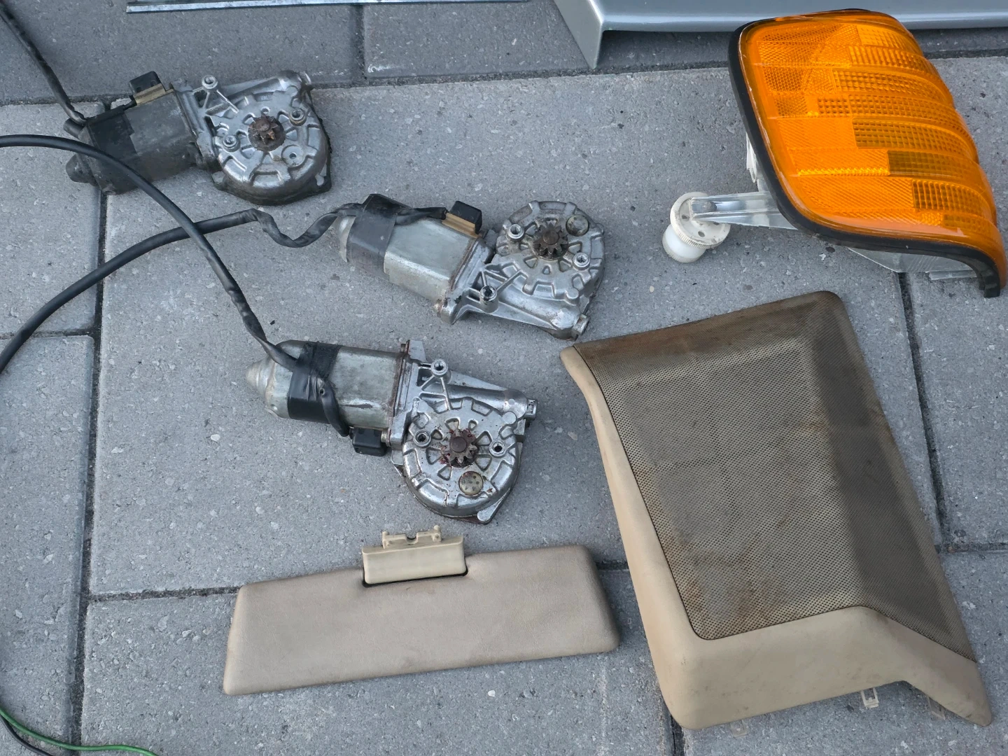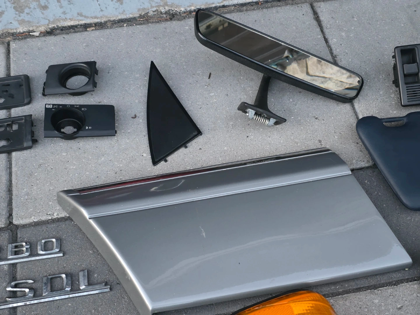 Have several parts mostly for w126 vehicles. The airbag and sun visors will also fit W124 models. Tail lights, windows motors, rear view mirror, indicator, glovebox trim, badges, etc.