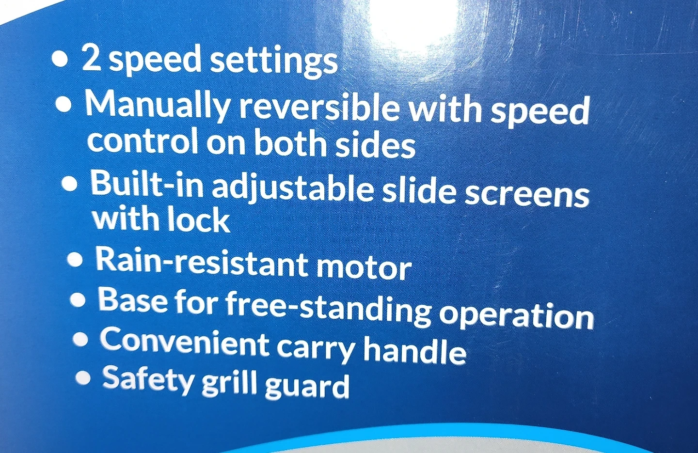 Cool Works 9in. twin window fan with 2 speed settings. Manually reversible with speed control on both sides. Built-in adjustable slide screens with lock. Includes a rain-resistant motor and a convenient carry handle. Base for free-standing operation with a safety grill guard.