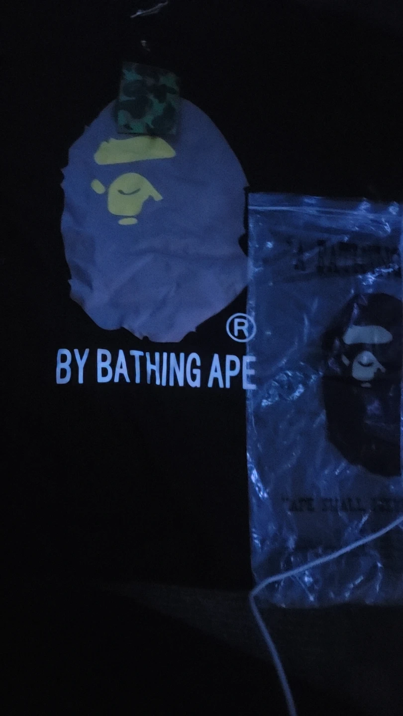 Black BAPE BY BATHING APE t-shirt. Features the iconic ape head logo. Includes original packaging.