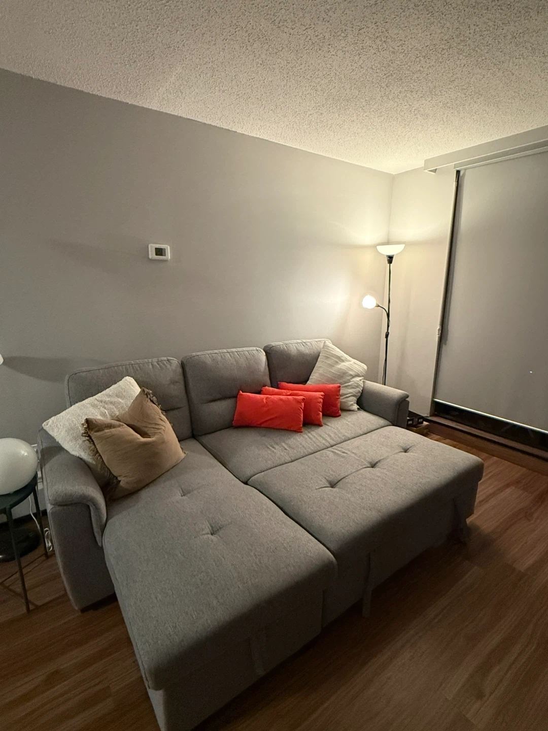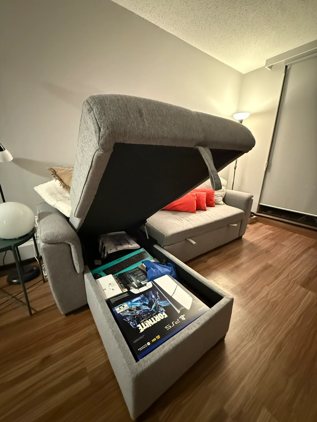 It’s in great condition, cleaned and can be taken apart for easy transport. Pillows can be added too.