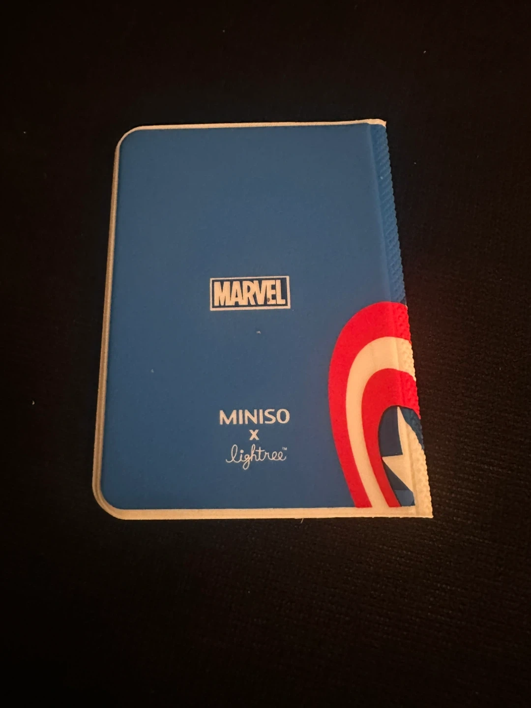 This Miniso notebook features Captain America from Marvel. It's a handy size for on-the-go notes. Inside, you'll find slots for cards or IDs.