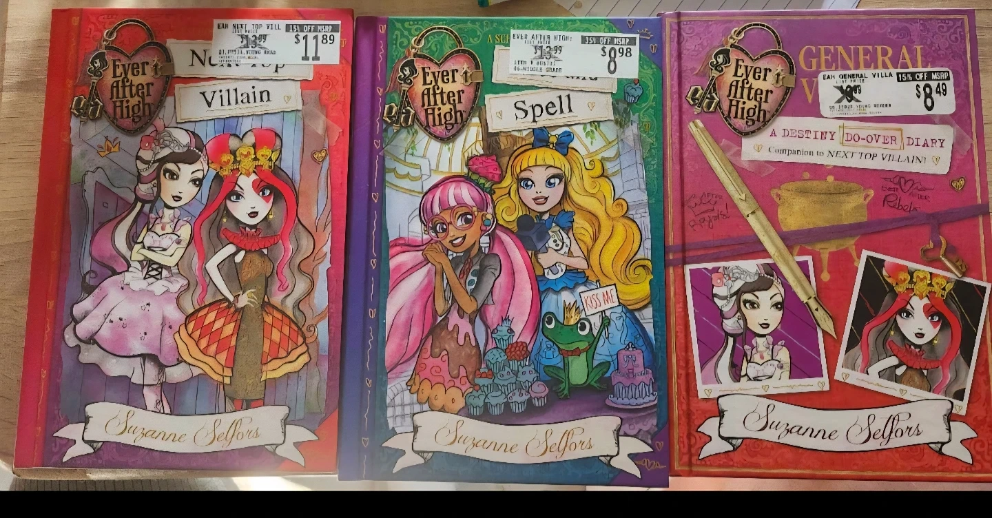Three Ever After High journals by Suzanne Selfors. Titles include Villain, Spell, and General. These are companion books to the series.