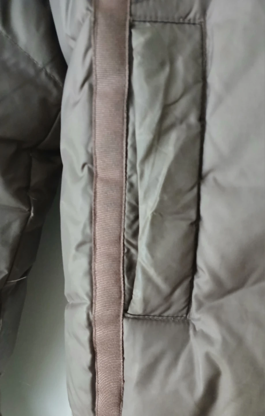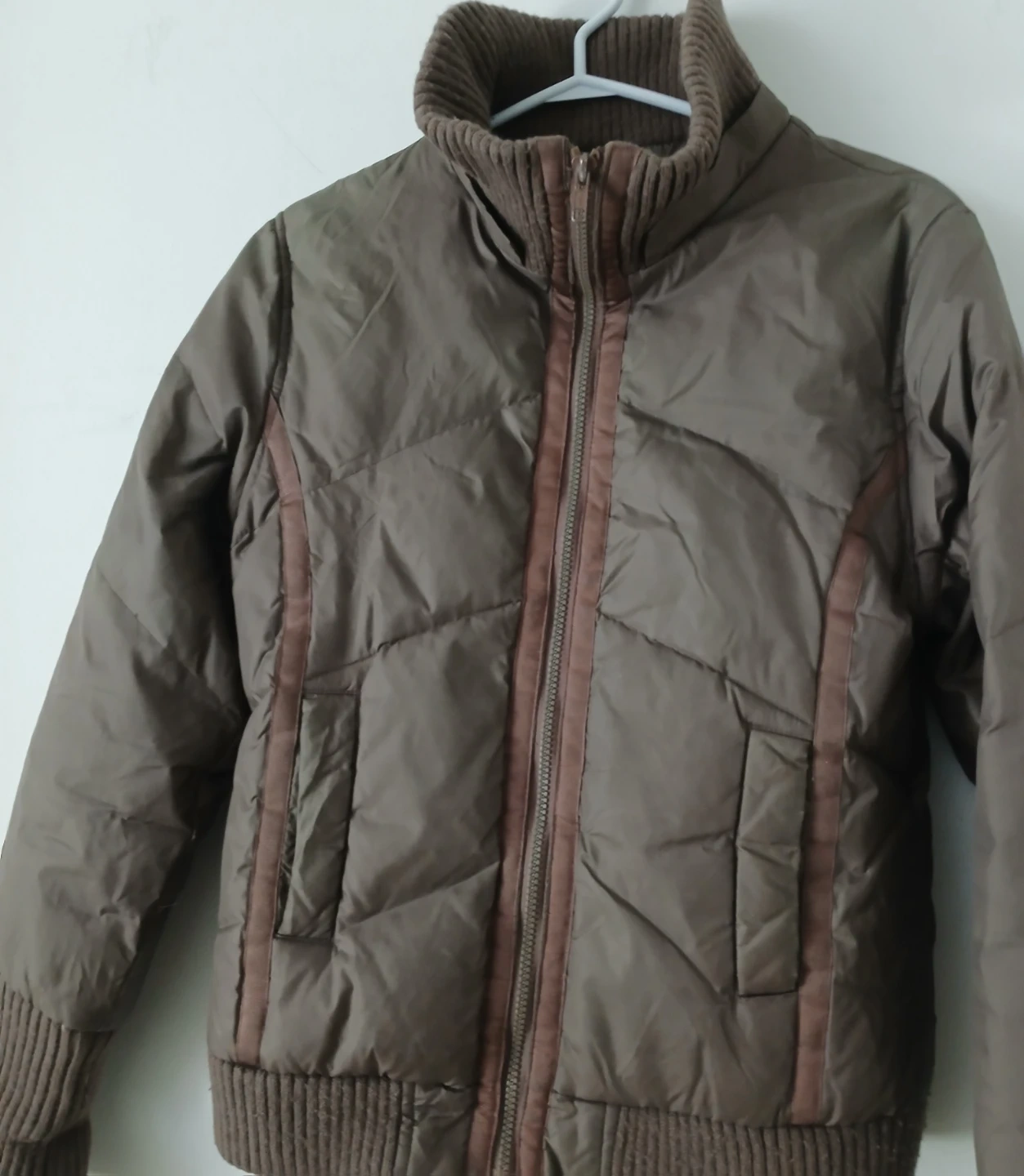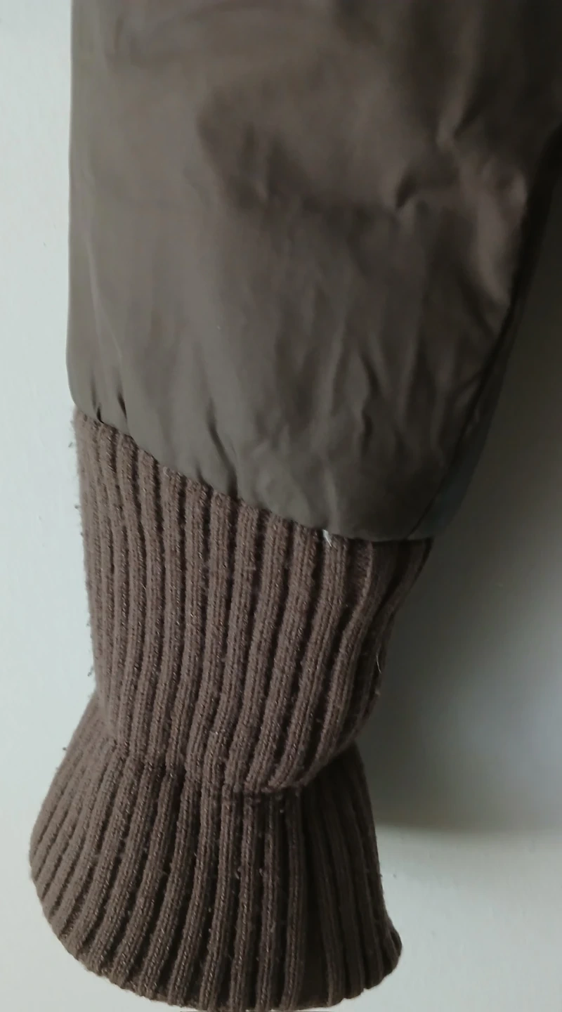 This Buffalo David Bitton puffer jacket is brown and size medium. It's made with a 100% nylon shell and lining, and filled with 50% duck down and 50% feather. Ribbed cuffs and collar provide a snug fit.
