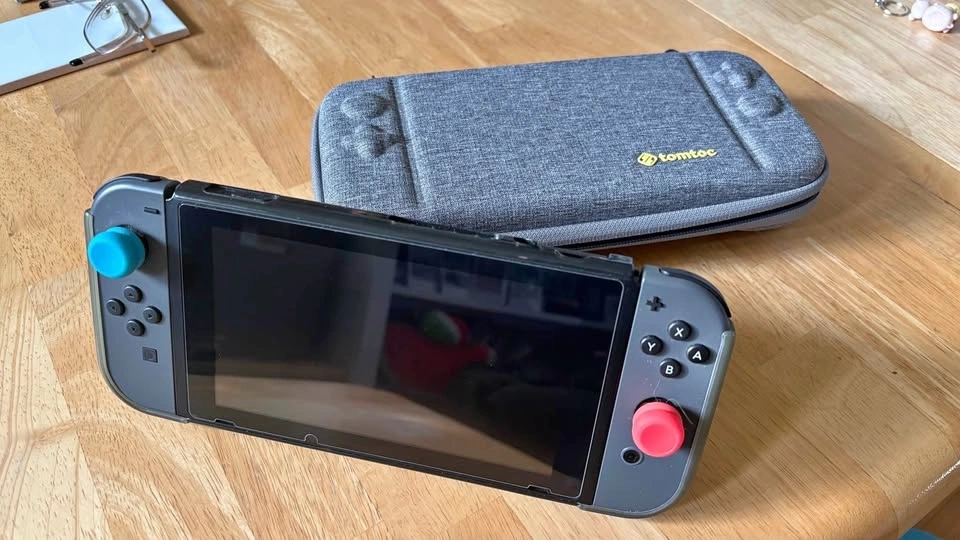 Switch like new, used by adult only. Screen protector and case installed on day 1. Comes with AC adapter, dock, 2 original Joy-Cons, protective case (installed), and screen protector (installed). Tomtoc case sold separately for +$20.