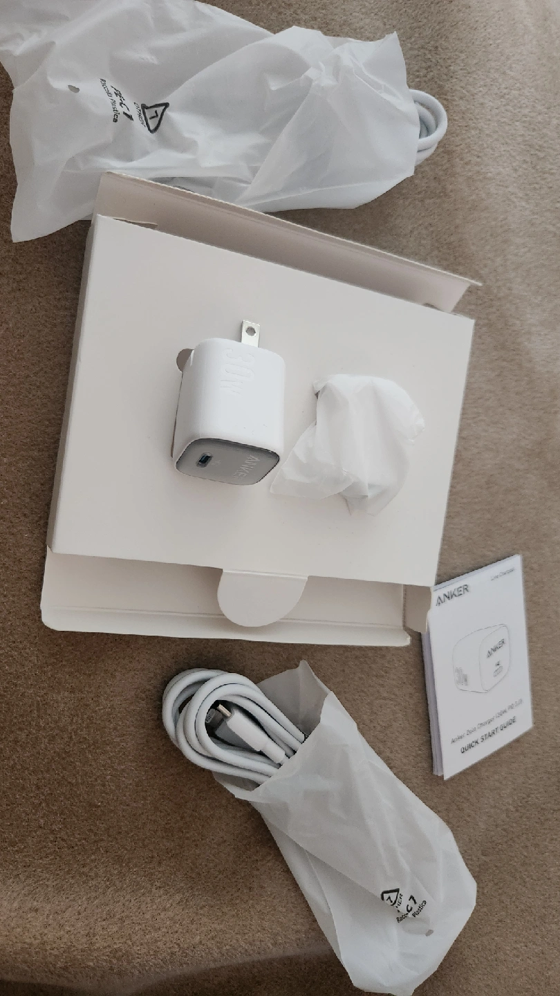 Selling 2 brand new Anker Charger (30W) in its original box! This charger is super handy for all your devices. It's lightweight and portable, perfect for travel or everyday use. Included are the charger itself, the charging cables, and the quick start guide. Get it while it's available!