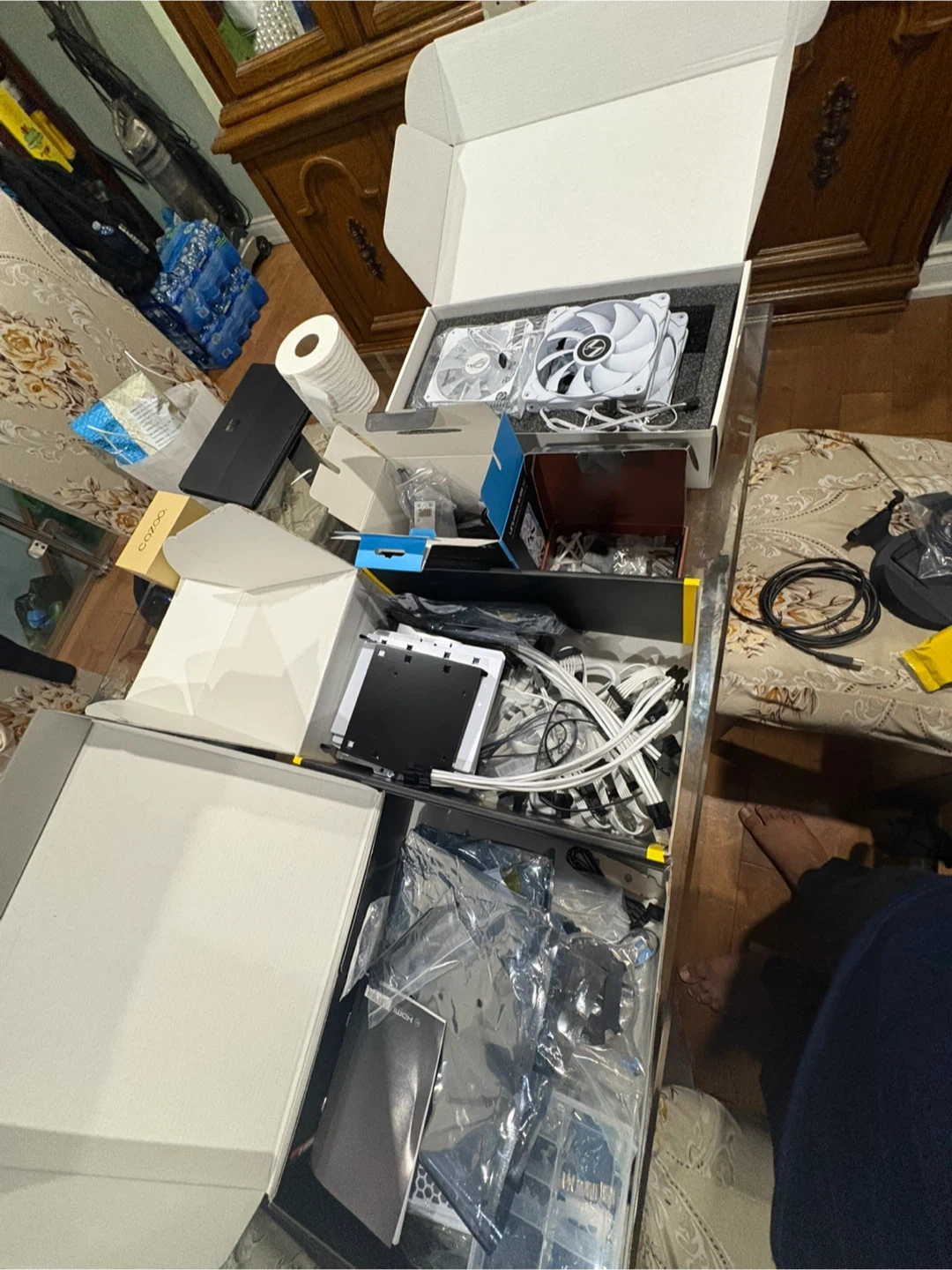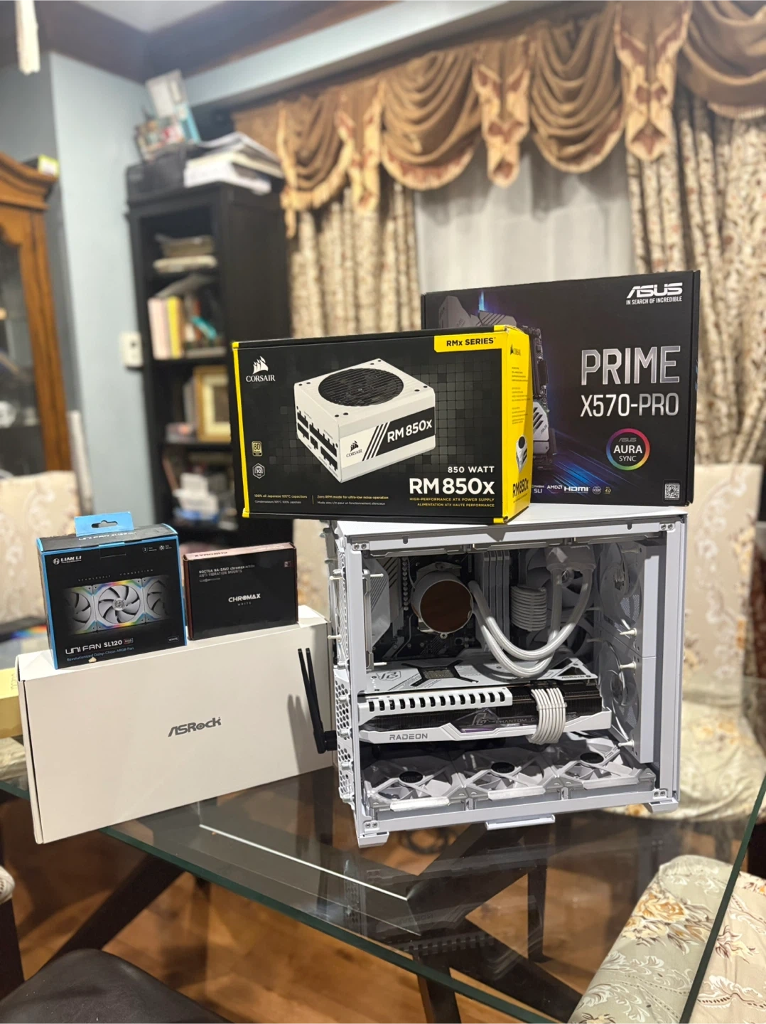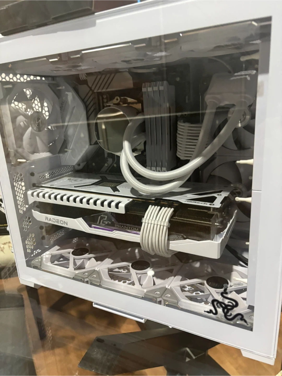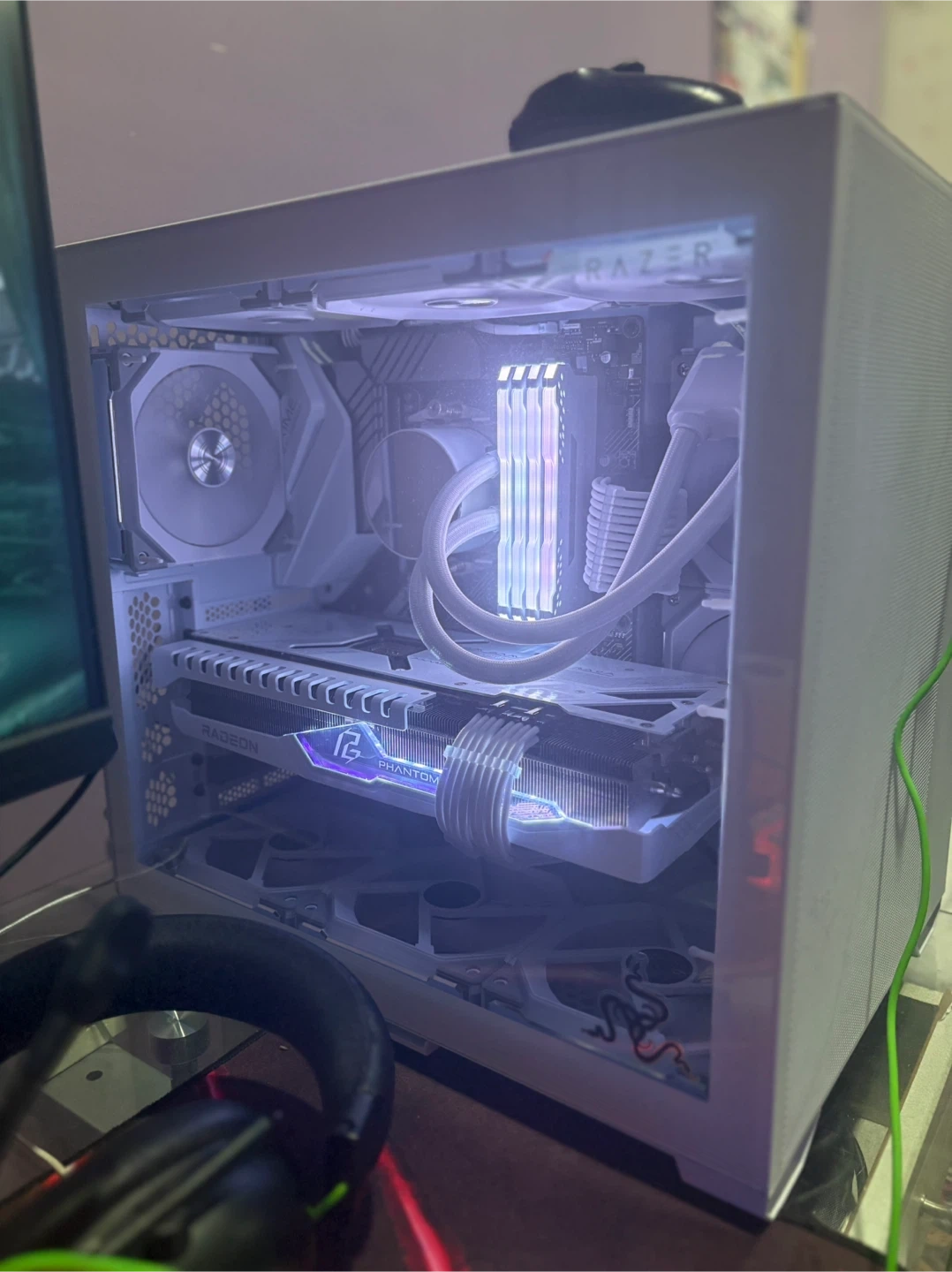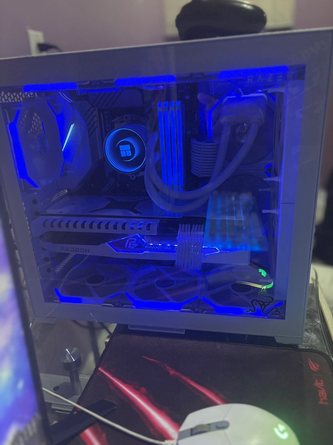 Firm price, pc does not come with storage at this price Samsung 980 Pro 2TB NVMe Gen4 SSD for only extra 150$ If your looking for a Beautiful top of the line gaming pc equipped with high end premium components to run any game at 4K or for productivity use this is it. This build was built two years ago but the graphics card was recently upgraded to a rx 7900xt. The build is extremely clean and very well taken care of. All in the total cost of this build was 2700$+ however was barely used and is in essentially new condition. Most part boxes I still have as shown in photos besides the cpu box and other mecilanios packaging like ram and storage. All the parts in this build are white for a clean white look, and it really does look stunning. The only small downside is the fans have a light yellow glow and don’t turn fully white but the pc still looks awesome with other colors or the fans run can be turned off for a clean white look still. The pc includes a lot of extras as shown in the last photo, the boxes aren’t empty and contain orignal accessories that weren’t used. Here are the specs: CPU: AMD Ryzen 9 5900X (12-Core, 24-Thread) Cooler: Thermaltake Floe Notte ARGB 240mm Liquid Cooler (stock fans replaced with Lian Li UNI SL120 premium fans) Motherboard: ASUS PRIME X570-PRO ATX AM4 Memory: Corsair Vengeance RGB Pro 32GB (4x8GB) DDR4-3600MHz Storage: Samsung 980 Pro 2TB NVMe Gen4 SSD Graphics Card: ASRock Phantom Gaming OC Radeon RX 7900 XT 20GB (~ 3 years manufacturer warranty remaining) performance wise this card is similar in performance with the 5070 ti and trades blows depending on the game. Case: Lian Li O11 Air Mini Power Supply: Corsair RM850x 80+ Gold Fully Modular WiFi: TP-Link Archer TX20E AX1800 WiFi 6 Card Case Fans: 9x Lian Li UNI Fan SL120 ARGB Fan Mounts: Noctua NA-SAV2 If you have any questions feel free to ask I’m located danforth avenue and the price is firm. Pc will be tested and benchmarked before your purchase.