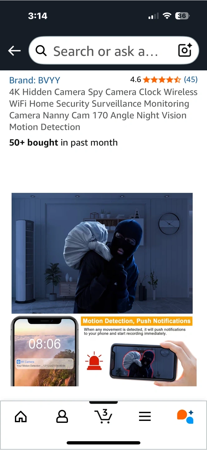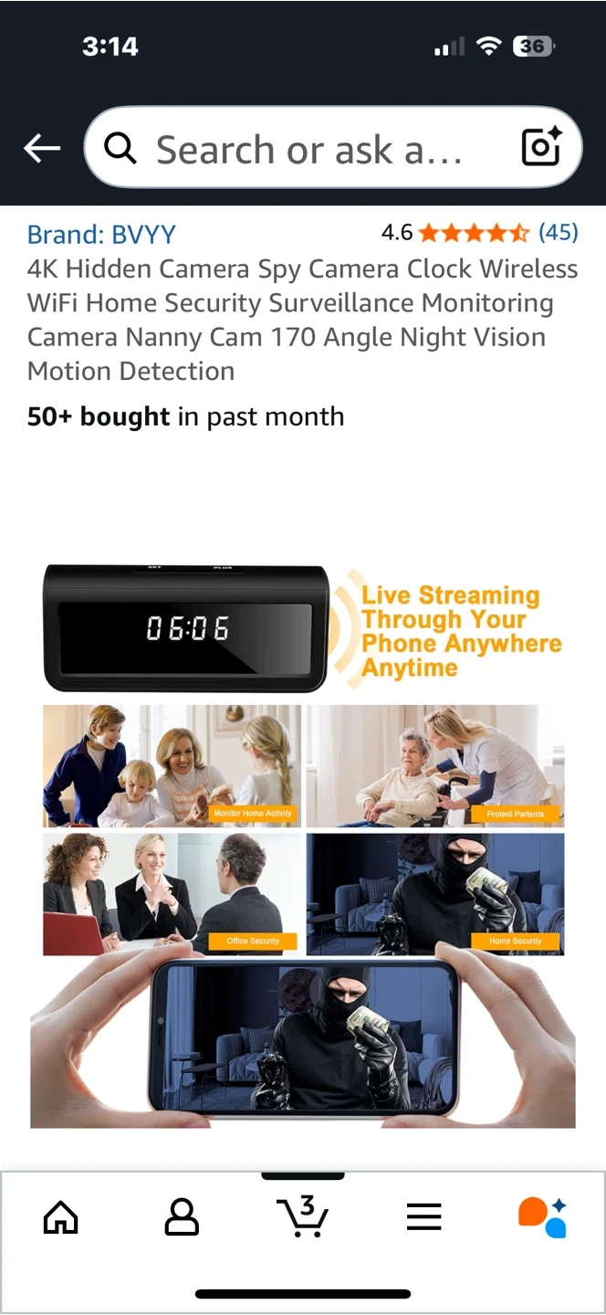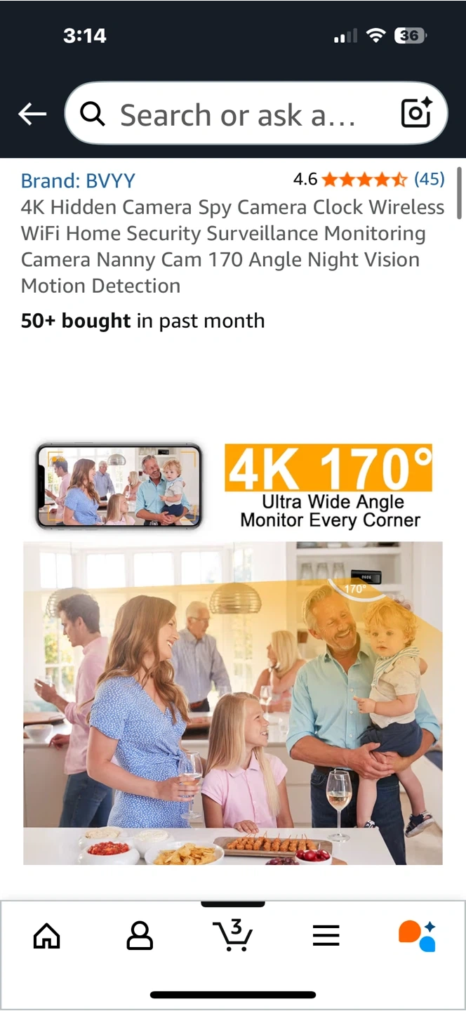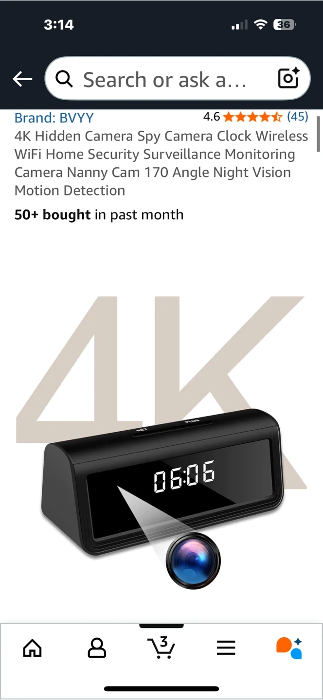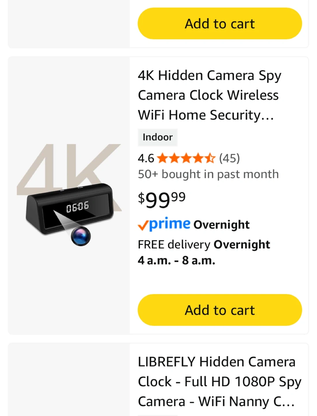 84Selling a BVYY 4K Hidden Camera Clock Wireless WiFi Home Security Surveillance Monitoring Camera. It has a 170-degree wide-angle night vision with motion detection. Great for home security!