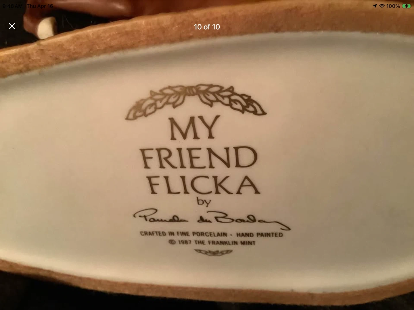 Vintage hand painted fine porcelain “My Friend Flicka” horse sculpture by the artist Pamela du Boulay for the Franklin Mint.