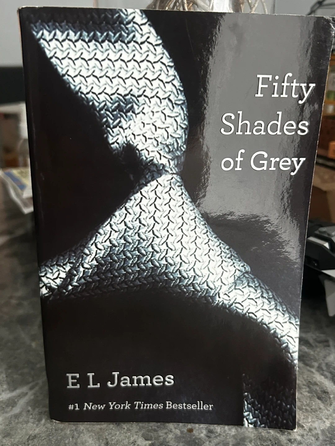 This is the #1 New York Times Bestseller, Fifty Shades of Grey, written by E. L. James. It's a mature romance novel about a young literature student and a wealthy entrepreneur. Over 70 million copies sold worldwide!