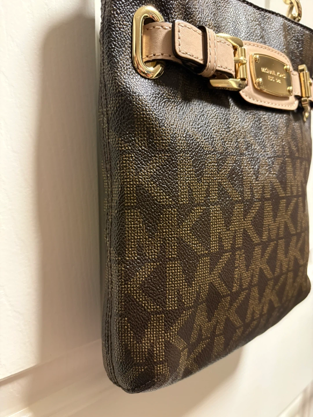 Michael Kors Brown Signature Print Leather Crossbody Bag