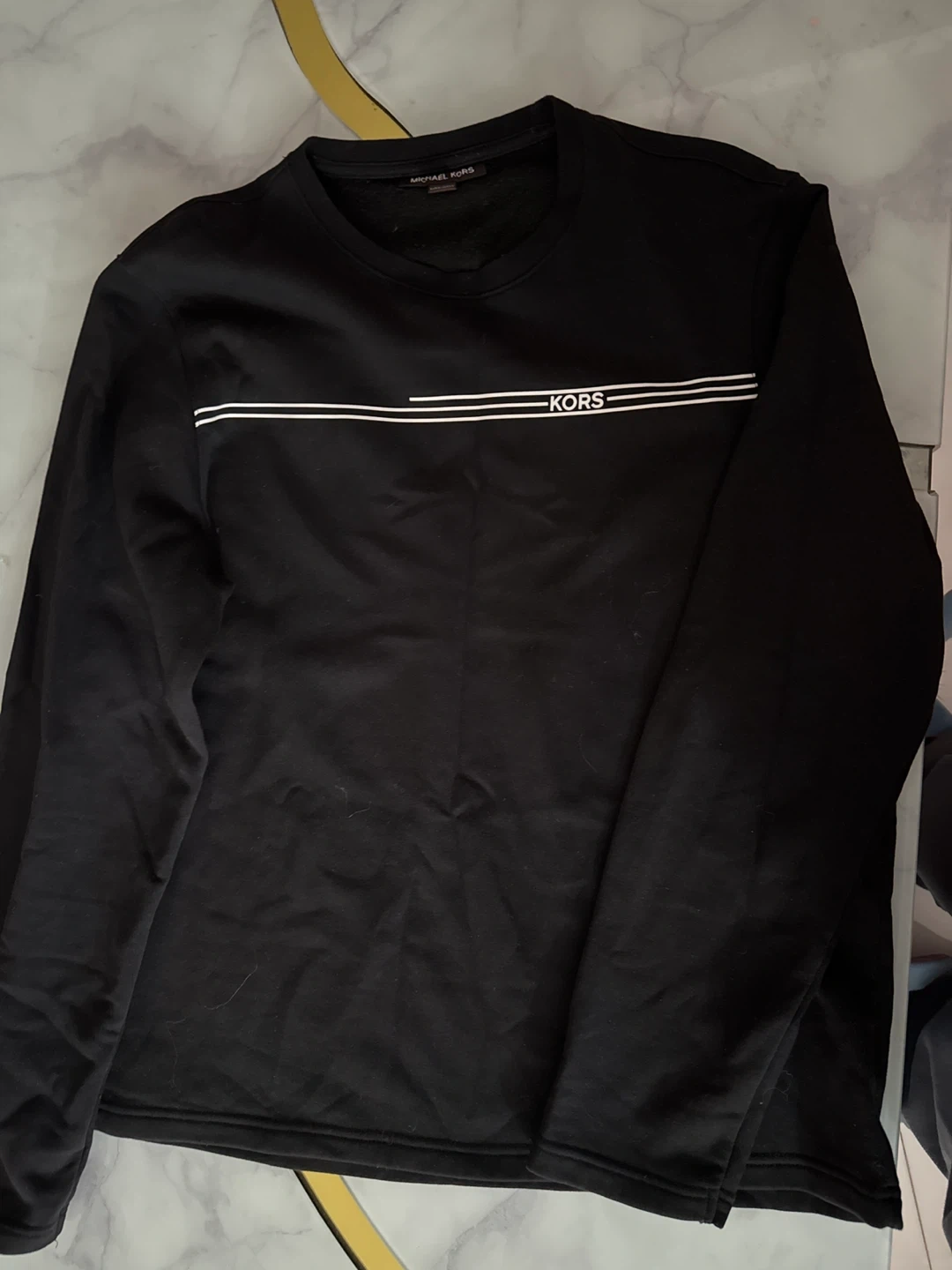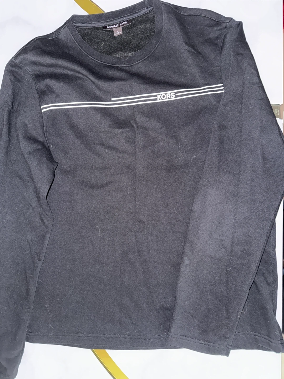 Michael Kors black sweatshirt with white stripe detail and KORS logo. Size L. Made in Bangladesh.