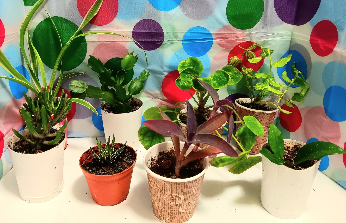 Add a touch of green to your space with this collection of assorted plants! Each plant comes in its own pot, ready to brighten up any corner of your home or office. These plants are in great condition, showing healthy growth and vibrant foliage.