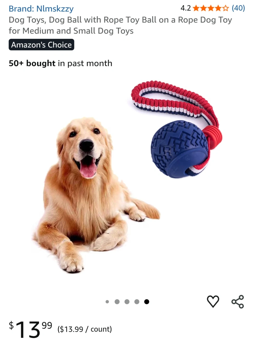 High elastic pull rope for dogs with a rubber ball. Features a sturdy, bite-resistant design for chewing and grinding. Ball diameter is 2.7 inches and length is 11.5 inches.