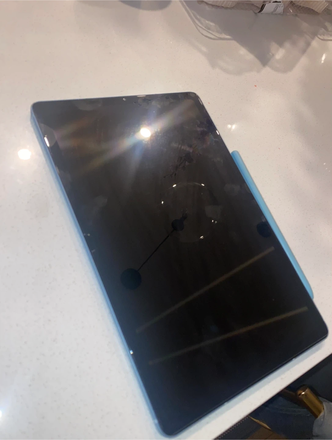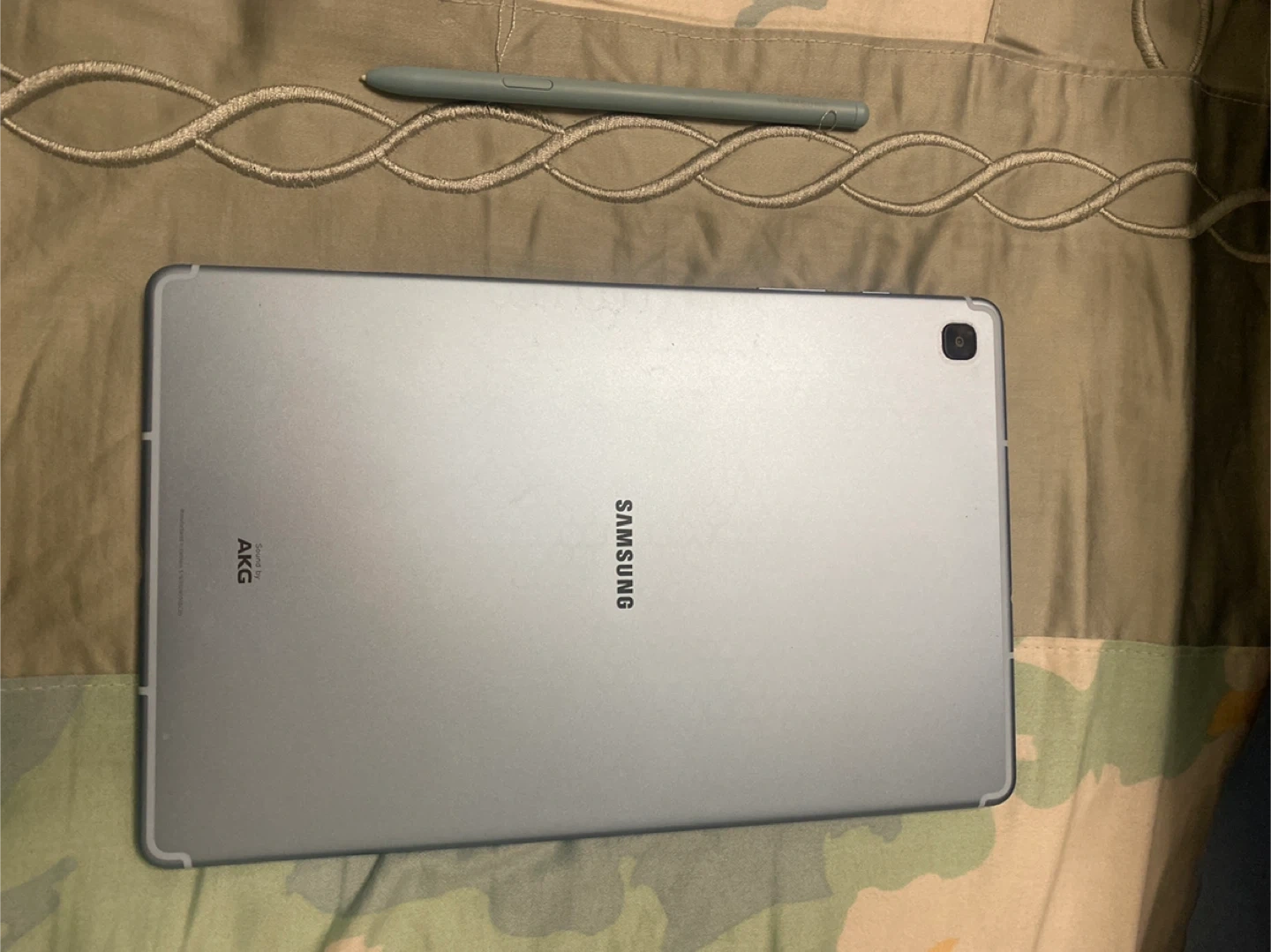 Samsung Galaxy Tab S6 Lite tablet in blue with an S Pen. It features a 10.4-inch display and AKG-tuned speakers. It's great for notes and drawings! Comes with original box! Barley used, works perfectly!