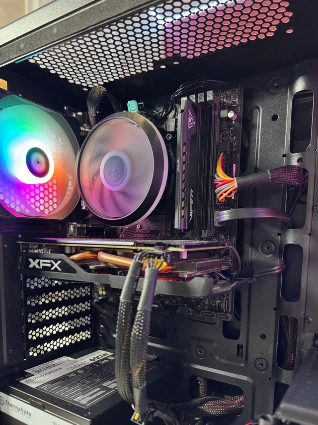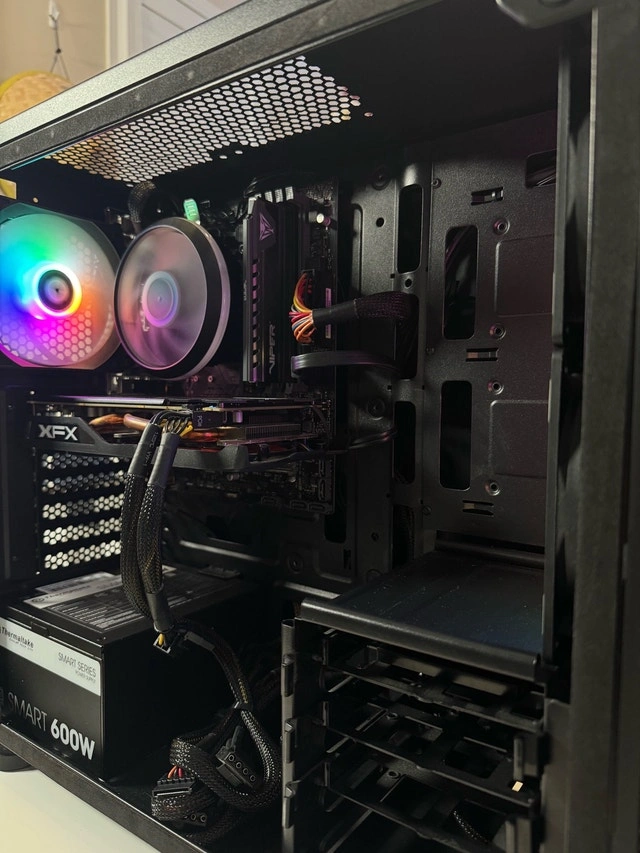 Entry-level gaming PC, great for 1080p gaming at medium settings (high in esports titles). Ready to use, runs cool and quiet, and has been well maintained. Specs: CPU: Intel Core i5-9400F, Motherboard: Asus PRIME B360M-A, RAM: 16GB Patriot Viper Elite 2666MHz, Storage: 120GB SanDisk SSD, Video Card: XFX RX 570 8GB, Case: Corsair Carbide SPEC-05, Power Supply: Thermaltake Smart 600W 80+, OS: Windows 11 Pro. Performance examples at 1080p Medium: Apex Legends ~80-100 FPS, Fortnite ~100-140 FPS, Valorant ~150+ FPS. The PC passes all stress tests and I can show it working on pickup. All RGB fans are static. Open to offers or trades for other gaming PCs or parts. Public meetup/pickup preferred.