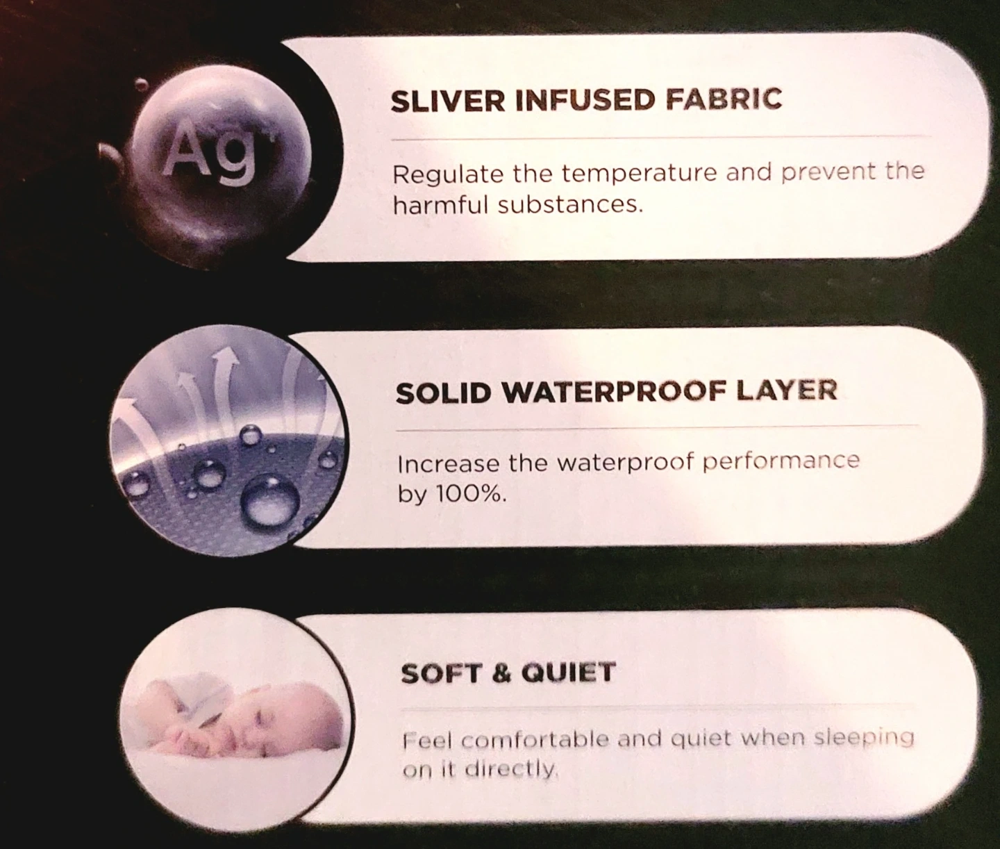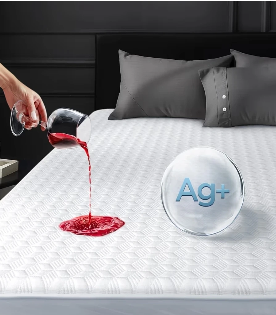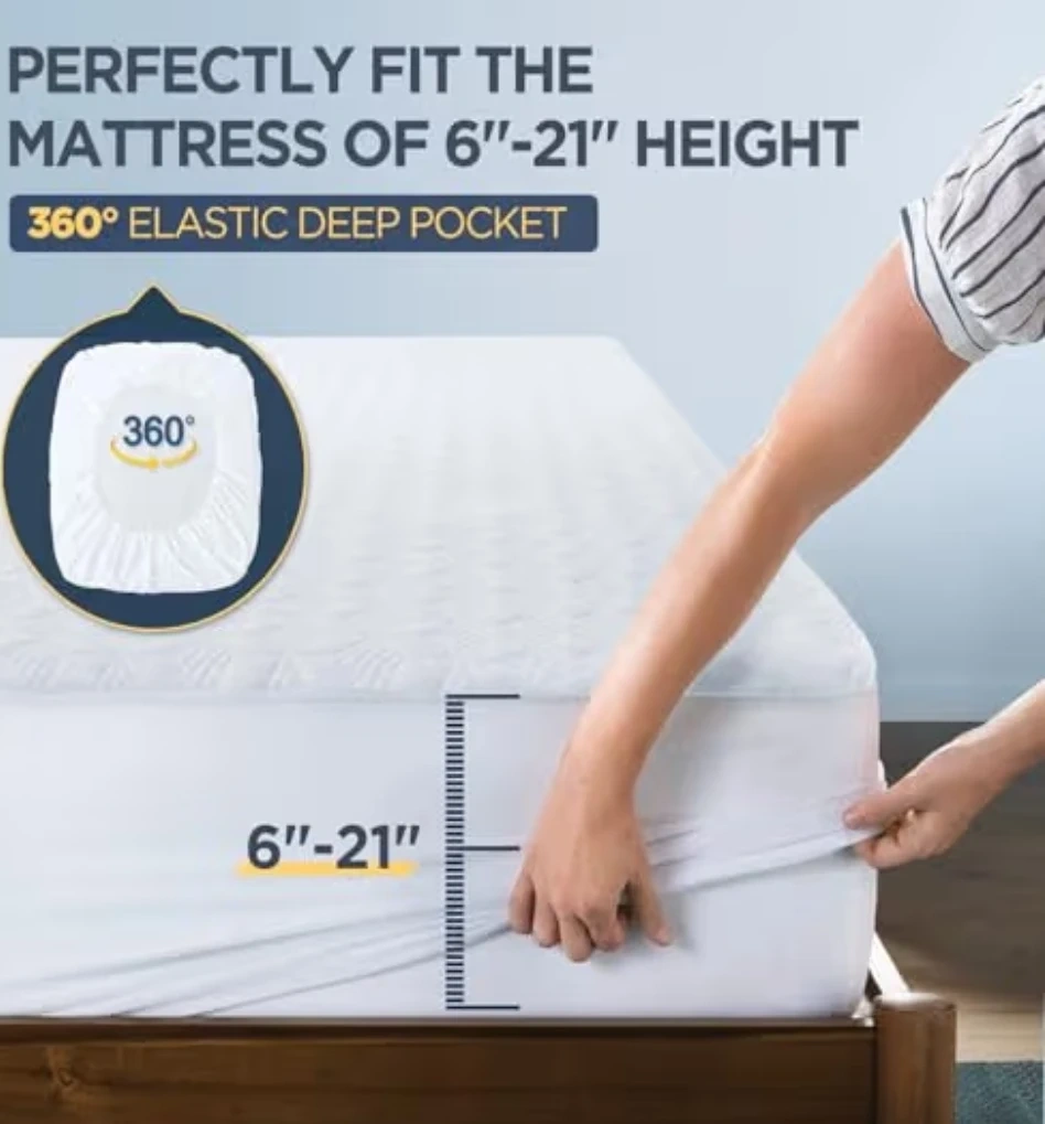 New Silver Ion Waterproof King Mattress Protector for mattresses of 6"-21" height. It's breathable, durable, and features a deep pocket design. Machine washable for easy care!