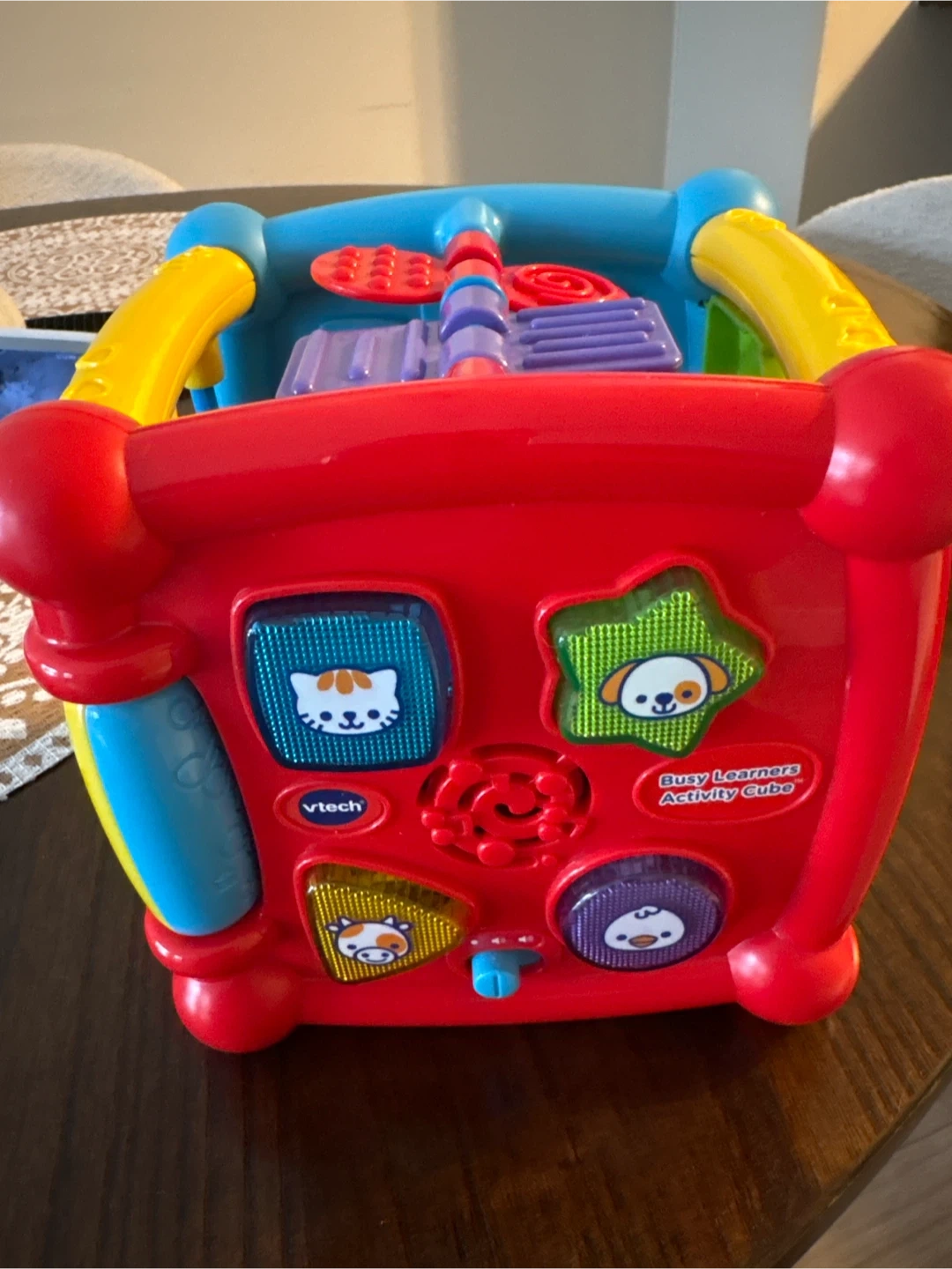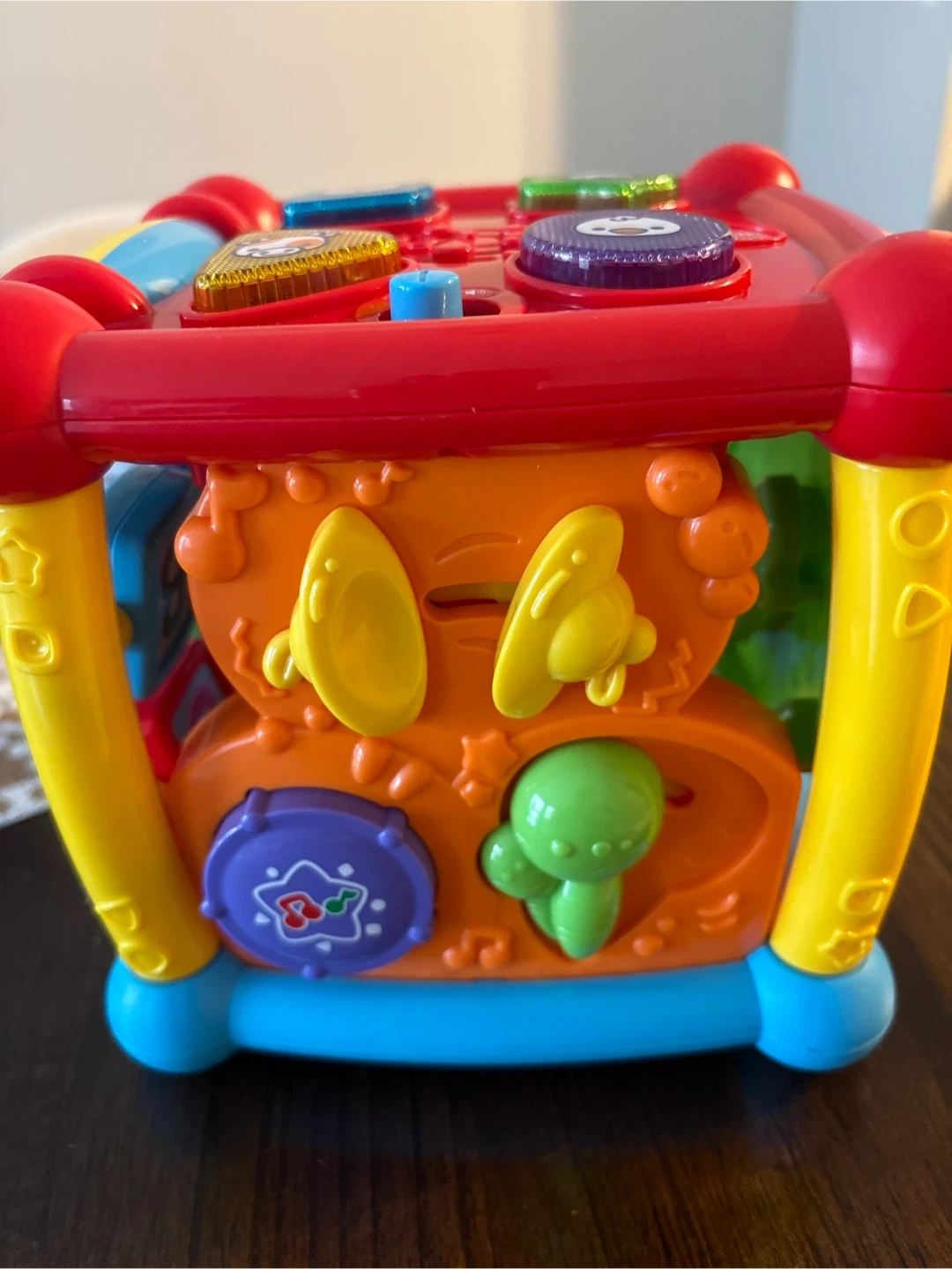 This VTech Busy Learners Activity Cube has lots of fun activities for little ones. It's a colourful and engaging toy with various buttons, gears, and playful sounds. It helps develop fine motor skills and encourages exploration.