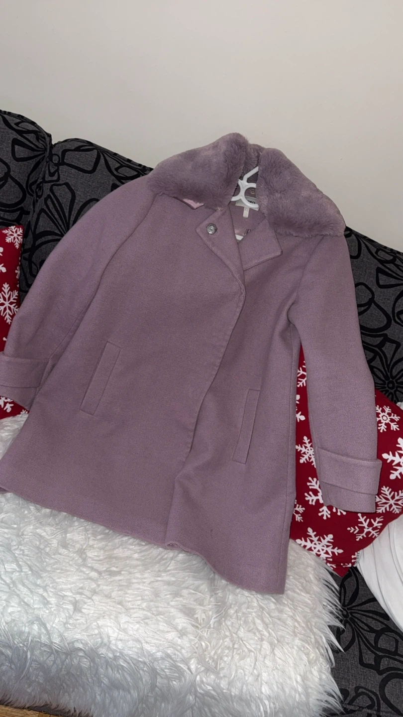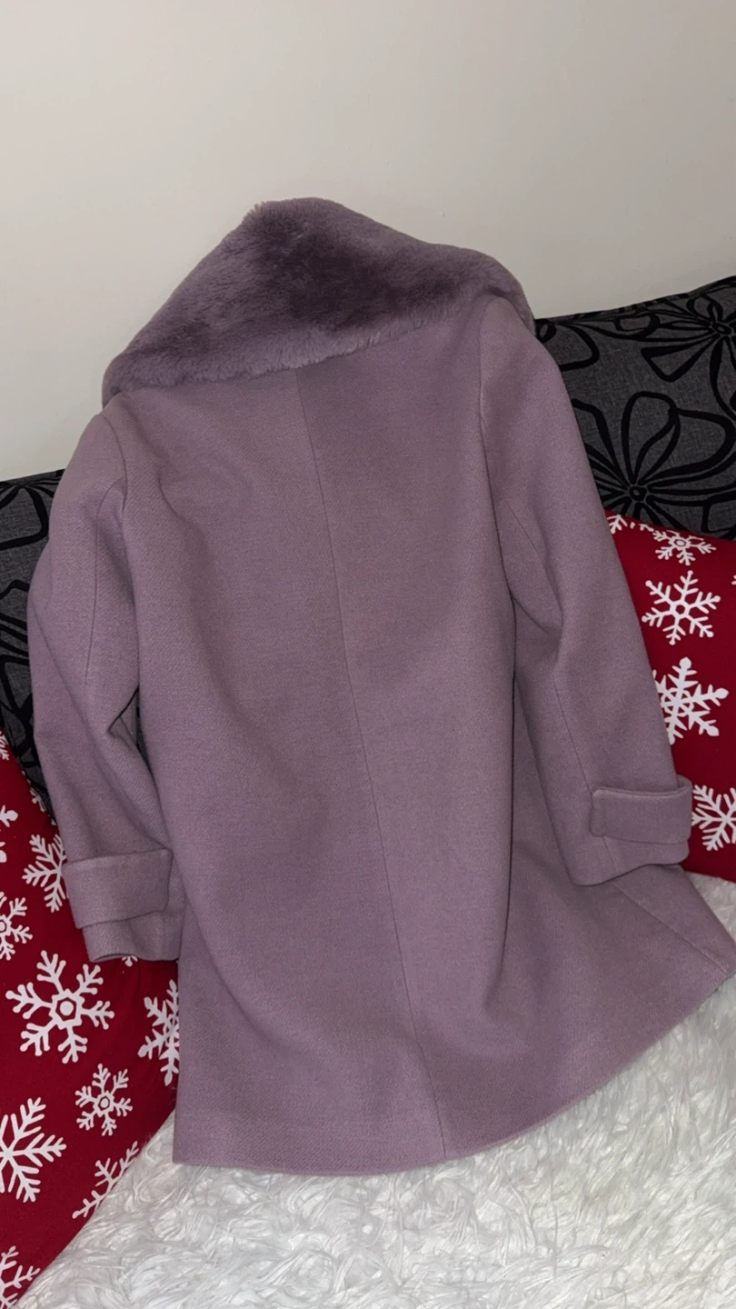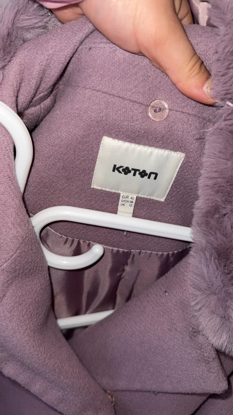 Selling a lovely purple coat from Koton Turkey! It's a European size 40, which is approximately a US size 12. The coat features a stylish faux fur collar, perfect for keeping you warm and fashionable during the colder months