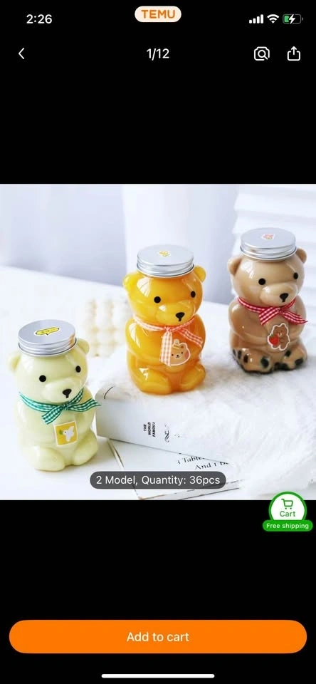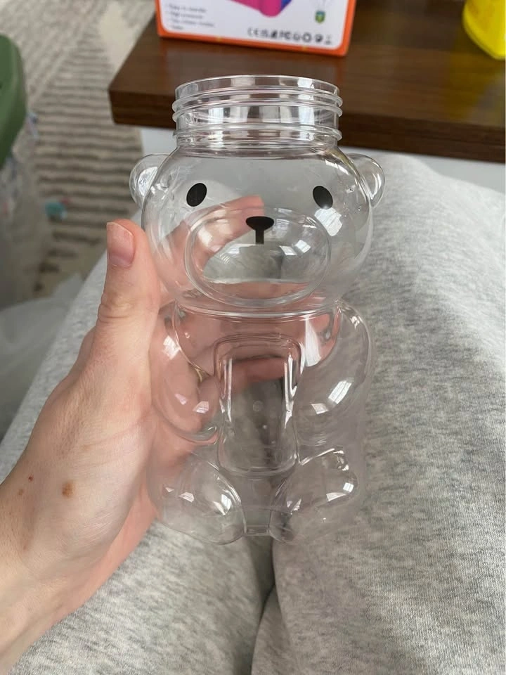 Selling a set of about 36 teddy bear jars/cups, originally purchased from Temu. Most are unused, with about 15 having been used and washed. Lids without holes are also included.