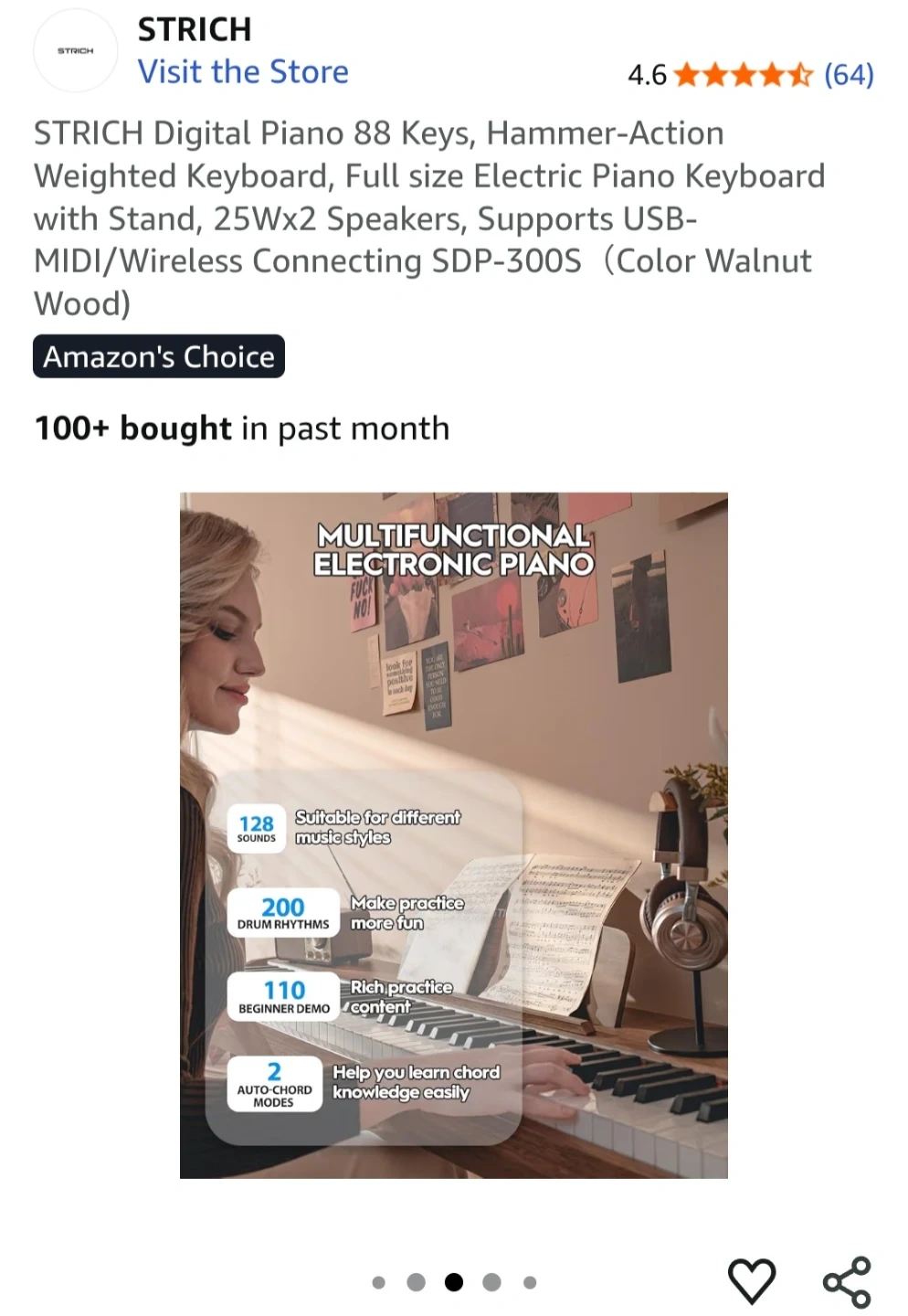 STRICH Digital Piano 88 Keys - Walnut Wood