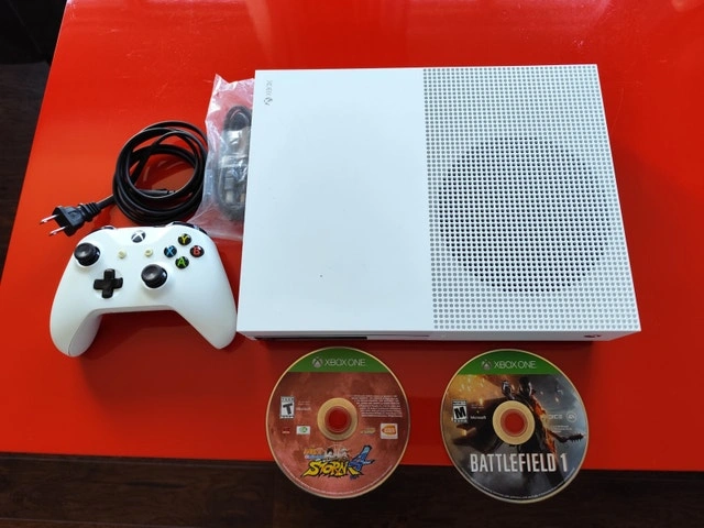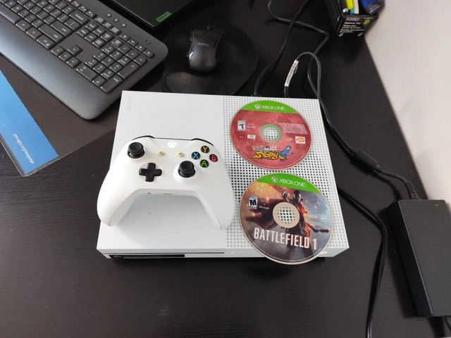 Rarely played Xbox One S, comes with original controller and all cables, all in great condition. Includes games like Battlefield 1, Naruto Shippūden: Ultimate Ninja Storm 4, Call of Duty: Modern Warfare, Resident Evil: Revelations 2, Call of Duty: Warzone, Rocket League, Hitman 3, The Sims 4, and more. Feel free to message if you have any questions!