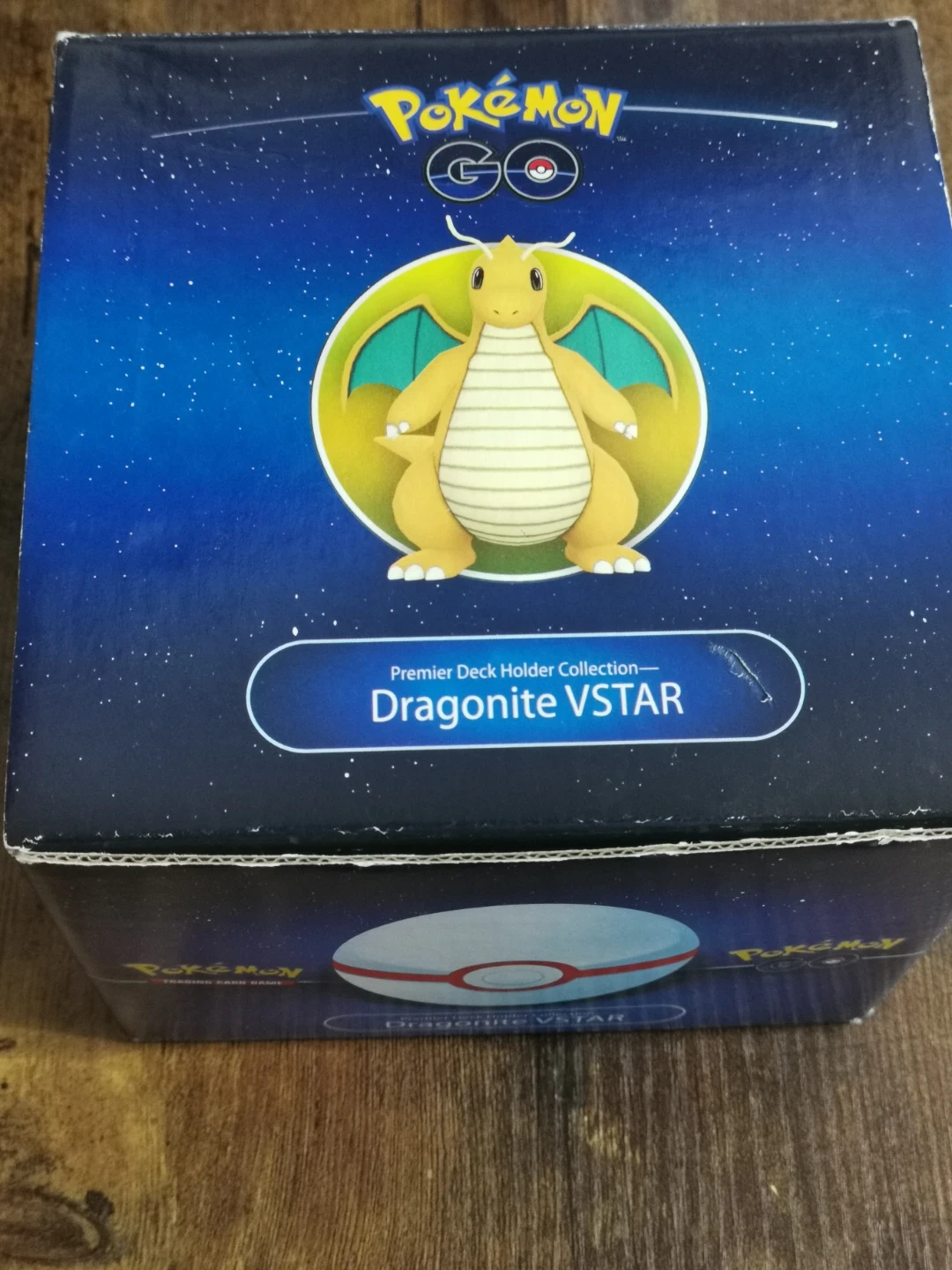 This Pokemon GO Premier Deck Holder Collection features Dragonite VSTAR. It includes a deck box and what appears to be trading cards. The collection comes in its original box with a poké ball design holder.