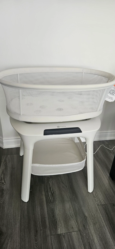 12Selling a gently used 4moms MamaRoo Sleep Bassinet! It comes from a smoke-free and pet-free home. Retail price: $600. Includes: Original box, basket (retail price $50) and 2 fitted sheets (retail price $25 each one). Features 5 unique motions (car ride, kangaroo, wave, rock-a-bye, and swing), adjustable speed, and built-in white noises to soothe your baby. Height is adjustable, and the mesh sides provide safe breathability.