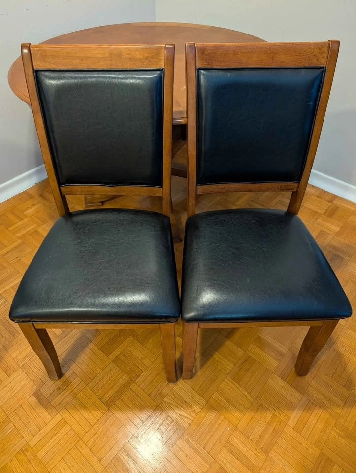 Dining table with 4 chairs. 2 of the chairs are still in the box, unused. Chairs are in good shape.