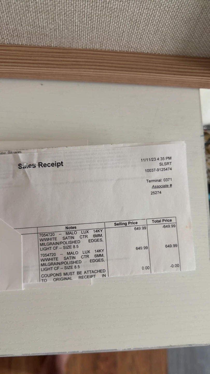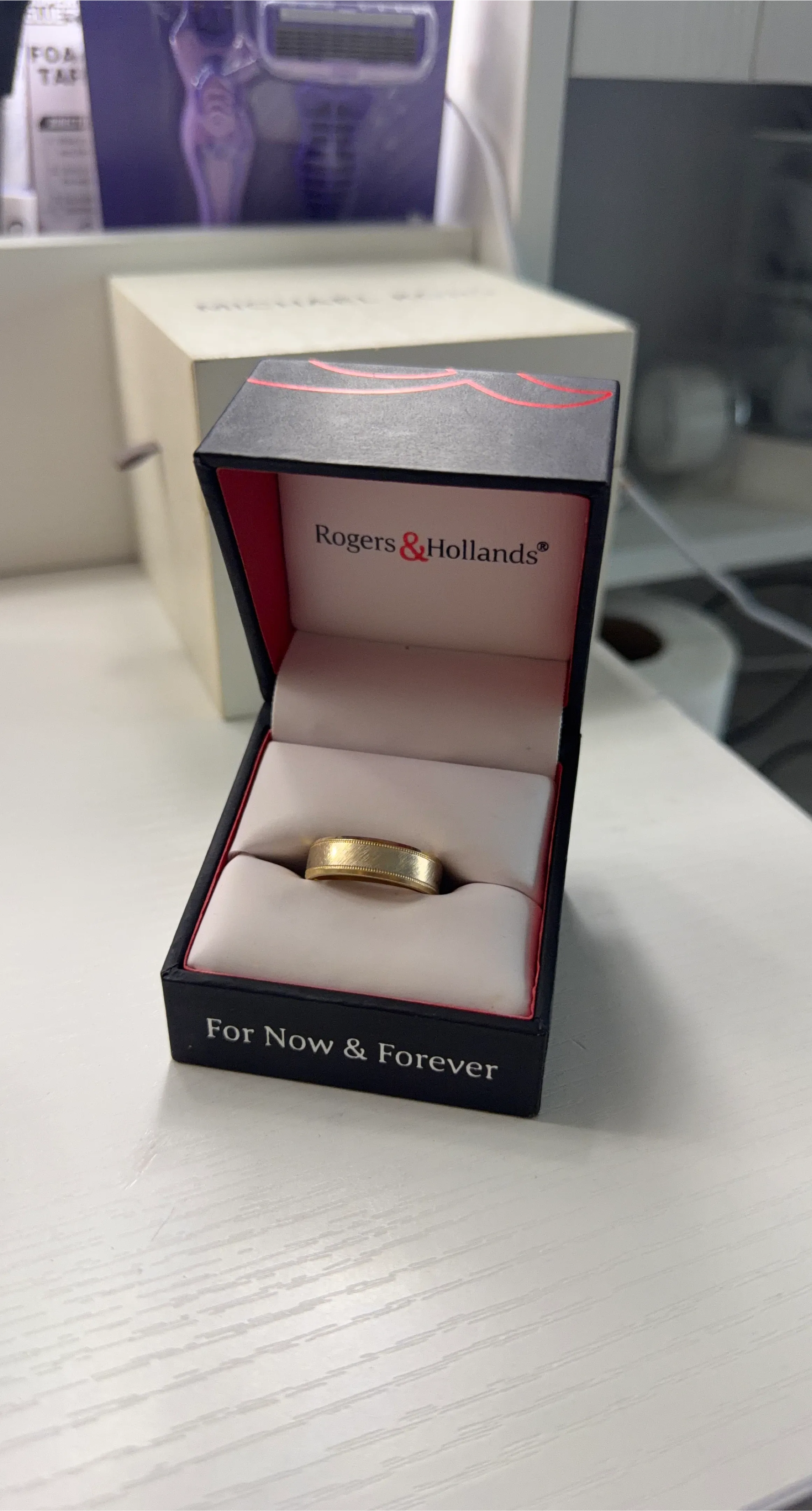 Buy & SellGold Wedding RingGold Wedding Ring$270Classic gold wedding band. Features a textured center with polished edges. Comes in a Rogers & Hollands box. The ring is 14K, size 8.5ConditionLike newSize8.5BrandRogers & HollandsWHERE TO MEETCheck LocationView MapSELLERverifiedCelesteAlbany Park661 review3 chats·2 favorites·172 viewsSEND CHAT TO SELLERHi Celeste! I’m interested in your listing.Hi Celeste! I’m interested in your listing.Get the Karrot app to chatSign In to chat